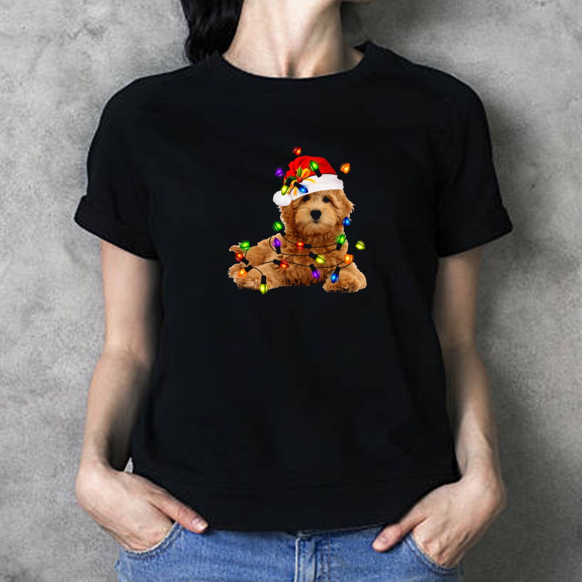 Celebrate the festive season with our delightful Goldendoodle In Santa Hat With Christmas Lights T-Shirt! This charming design is perfect for dog lovers and holiday enthusiasts alike, making it an ideal choice for casual gatherings, themed events, or simply spreading cheer during daily wear. Crafted with comfort and style in mind, this fan-made shirt adds a unique touch to your winter wardrobe, proudly printed in the USA.