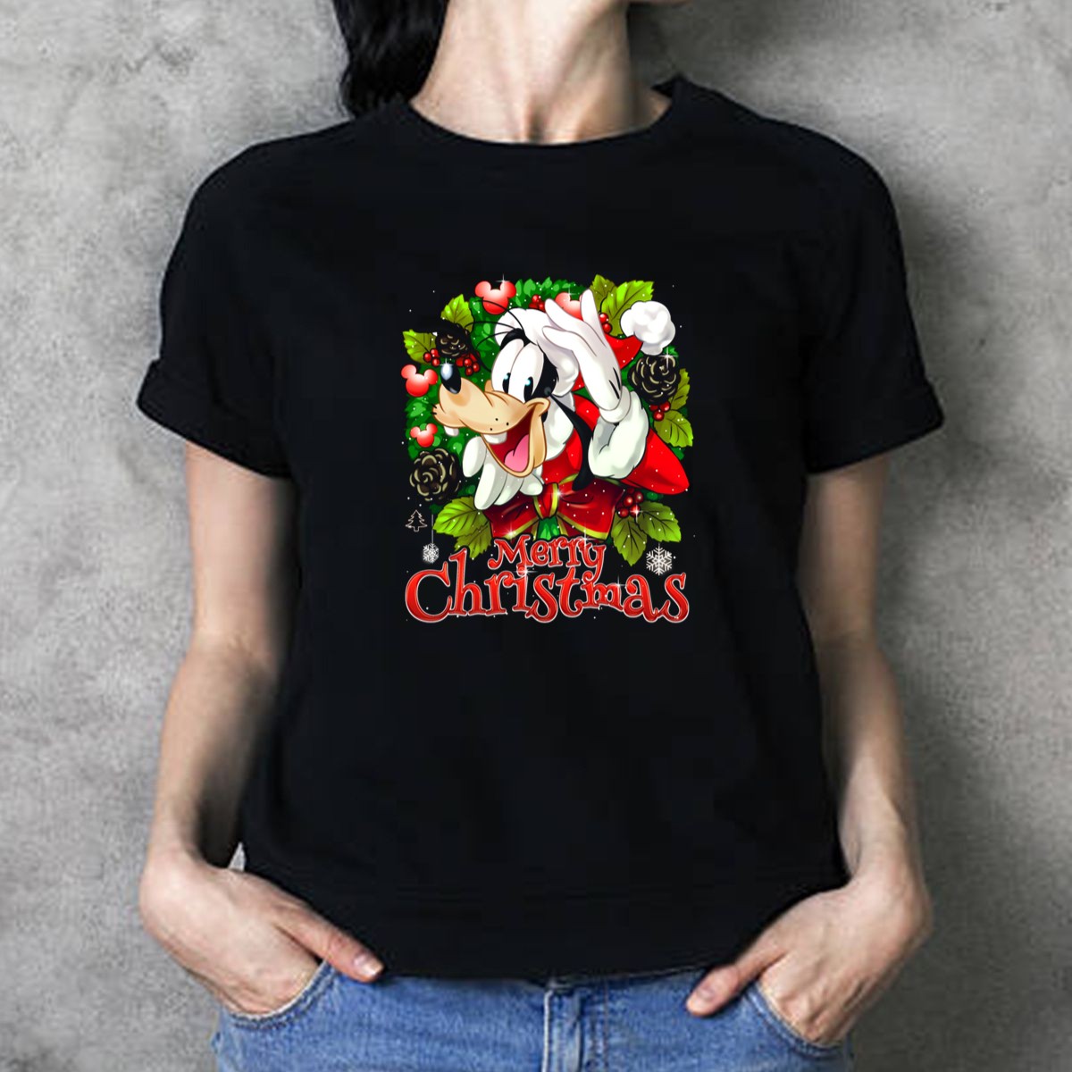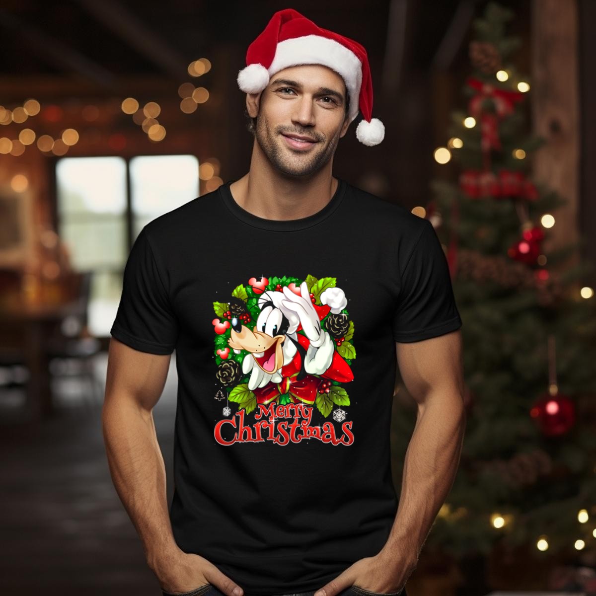 Be the first to review “Goofy Merry Christmas Wreath Santa Hat Pinecones Snowflakes And Holly T Shirt”