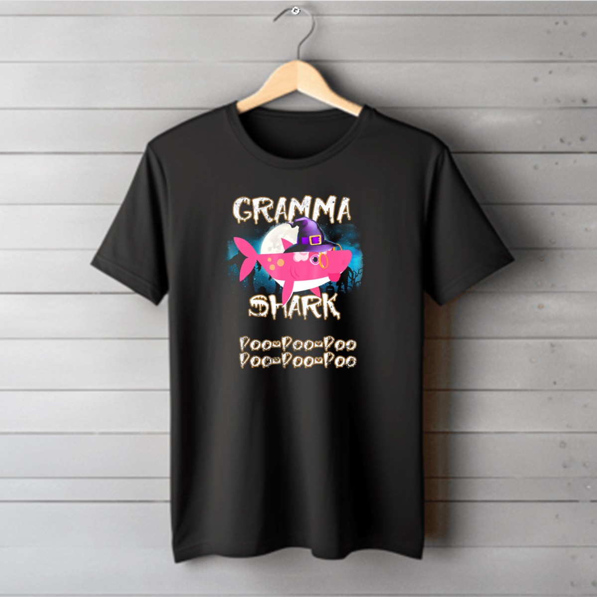 Be the first to review “Gramma Shark Doo Doo Doo Halloween Witch Hat And Moon Background T-Shirt”