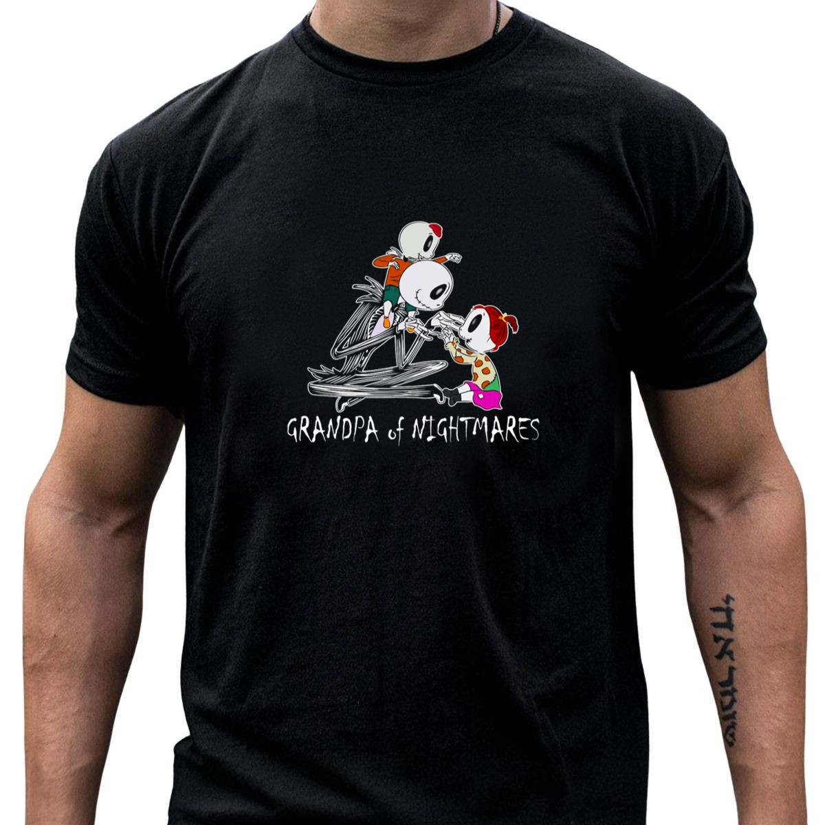 Celebrate the spooky season with our Grandpa Of Nightmares Halloween Skeleton T-Shirt, perfect for those who embrace the thrill of Halloween! Designed for both kids and adults, this fun and playful tee showcases a whimsical skeleton surrounded by a boy and girl, making it an ideal choice for themed events, family gatherings, or casual wear. Crafted with care and printed in the USA, this shirt is not just a piece of clothing, but a statement of your love for Halloween festivities.