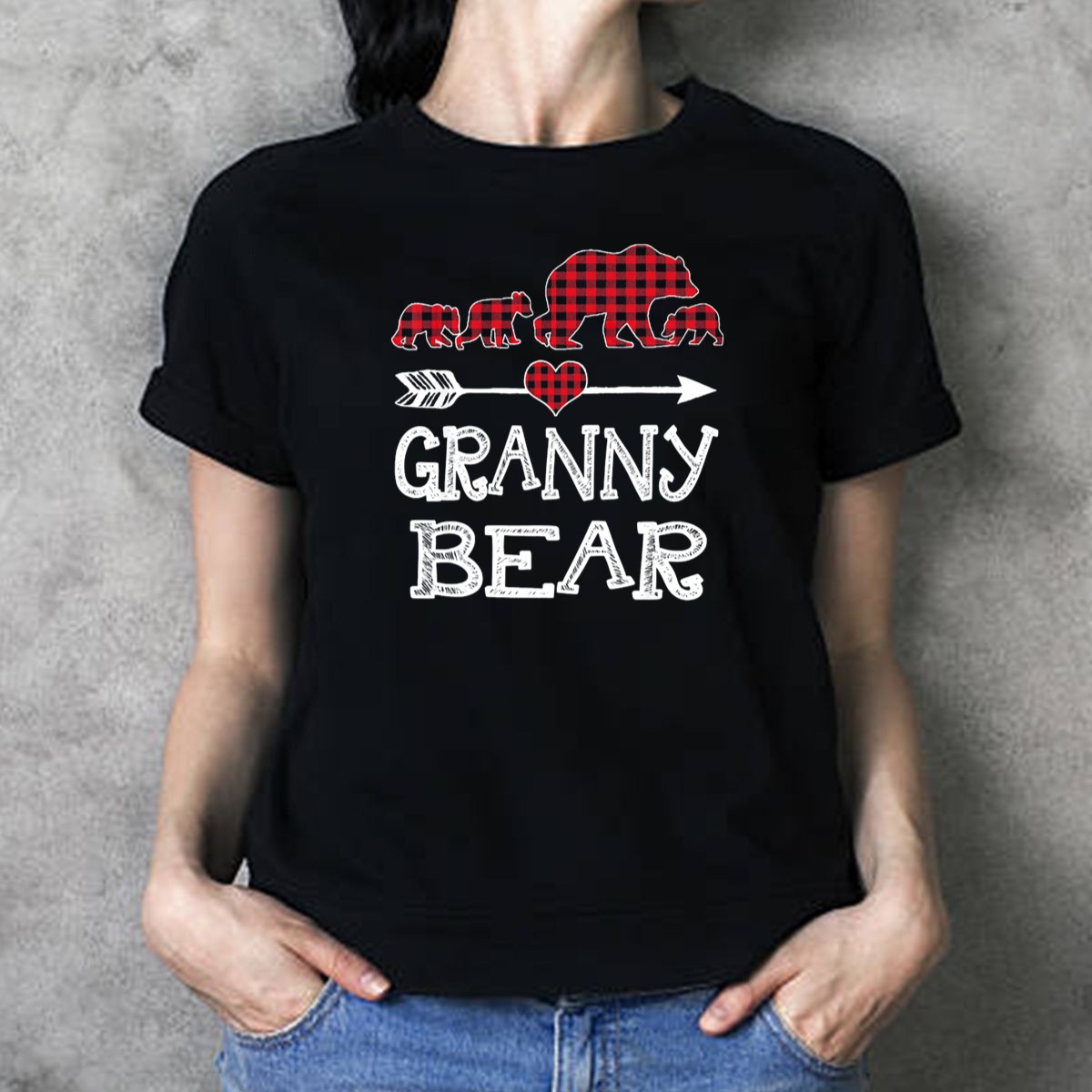 Celebrate the warmth of family and the spirit of the season with our Granny Bear Red Plaid Christmas Arrow Heart Family T-Shirt. This delightful unisex tee is perfect for those cozy holiday gatherings, family photos, or simply spreading festive cheer during the all-season. With its charming fan-made design printed in the USA, this shirt is a unique and heartwarming addition to your casual wardrobe.