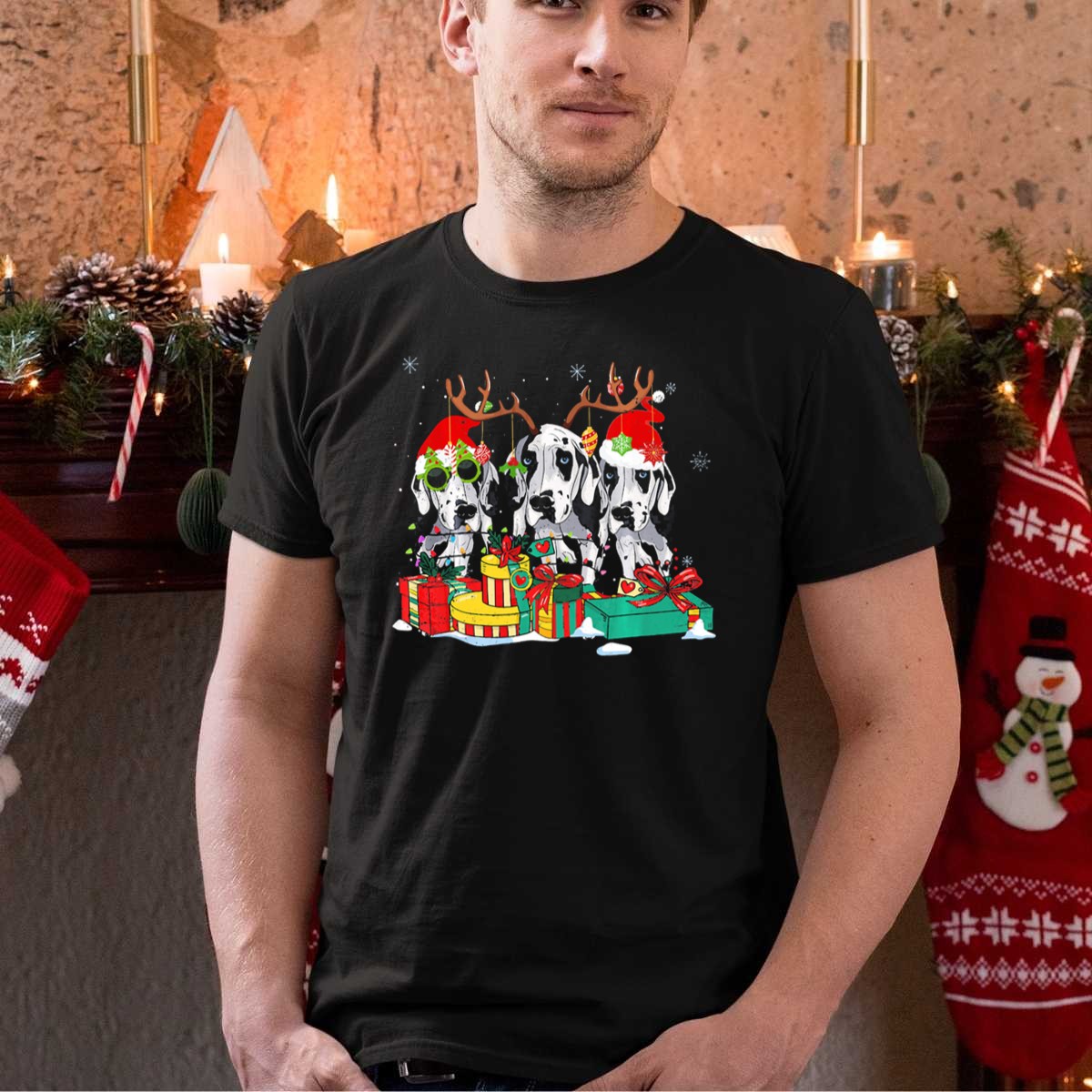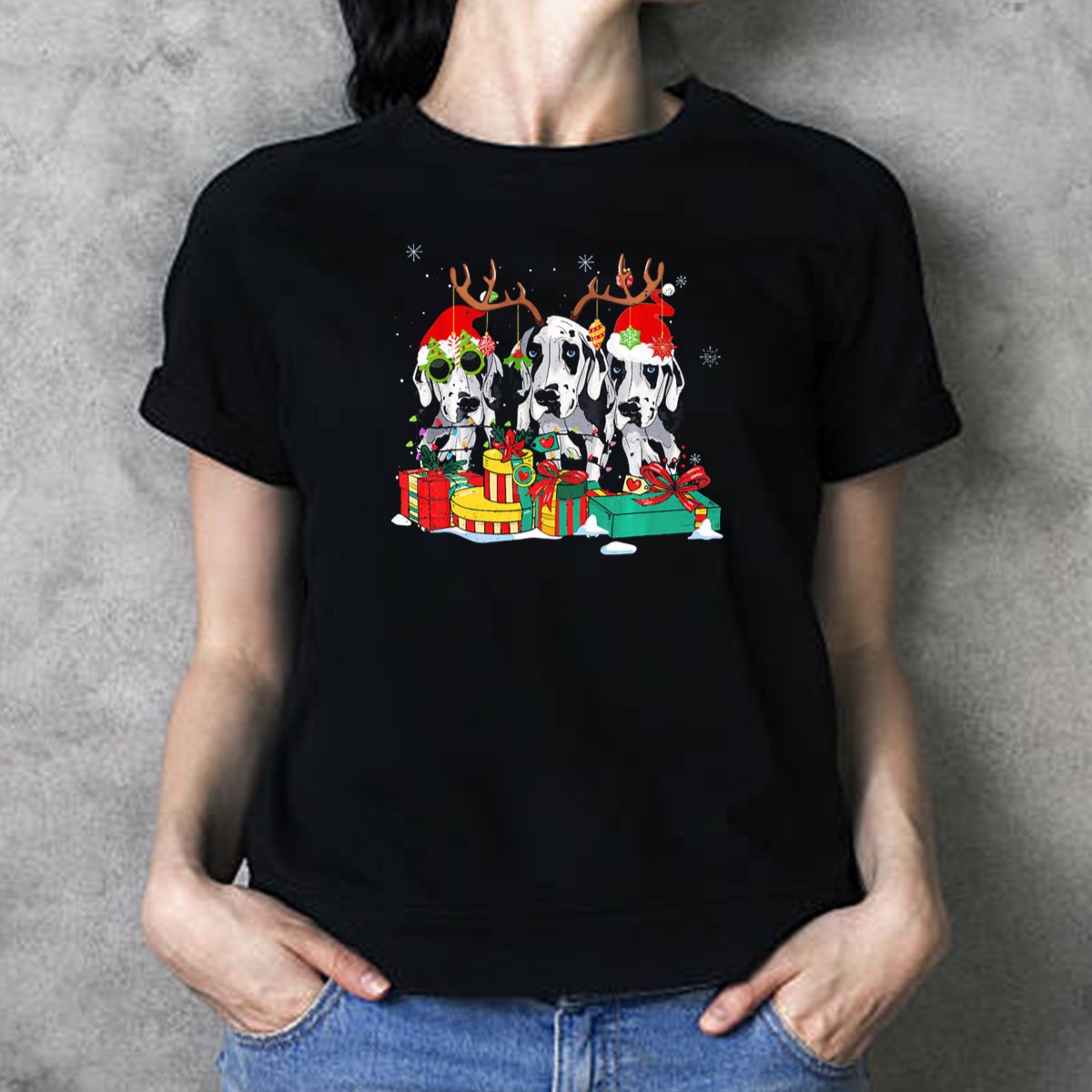Celebrate the festive season with our Great Dane Christmas T-Shirt, perfect for dog lovers who want to share their holiday spirit in style! Featuring a delightful design of a Great Dane adorned with a Santa hat, reindeer antlers, snowflakes, and presents, this shirt is ideal for casual wear, themed events, or simply showcasing your love for these majestic dogs during the holidays. Made with comfort and durability in mind, this fan-made design is printed in the USA, ensuring a unique addition to your wardrobe.