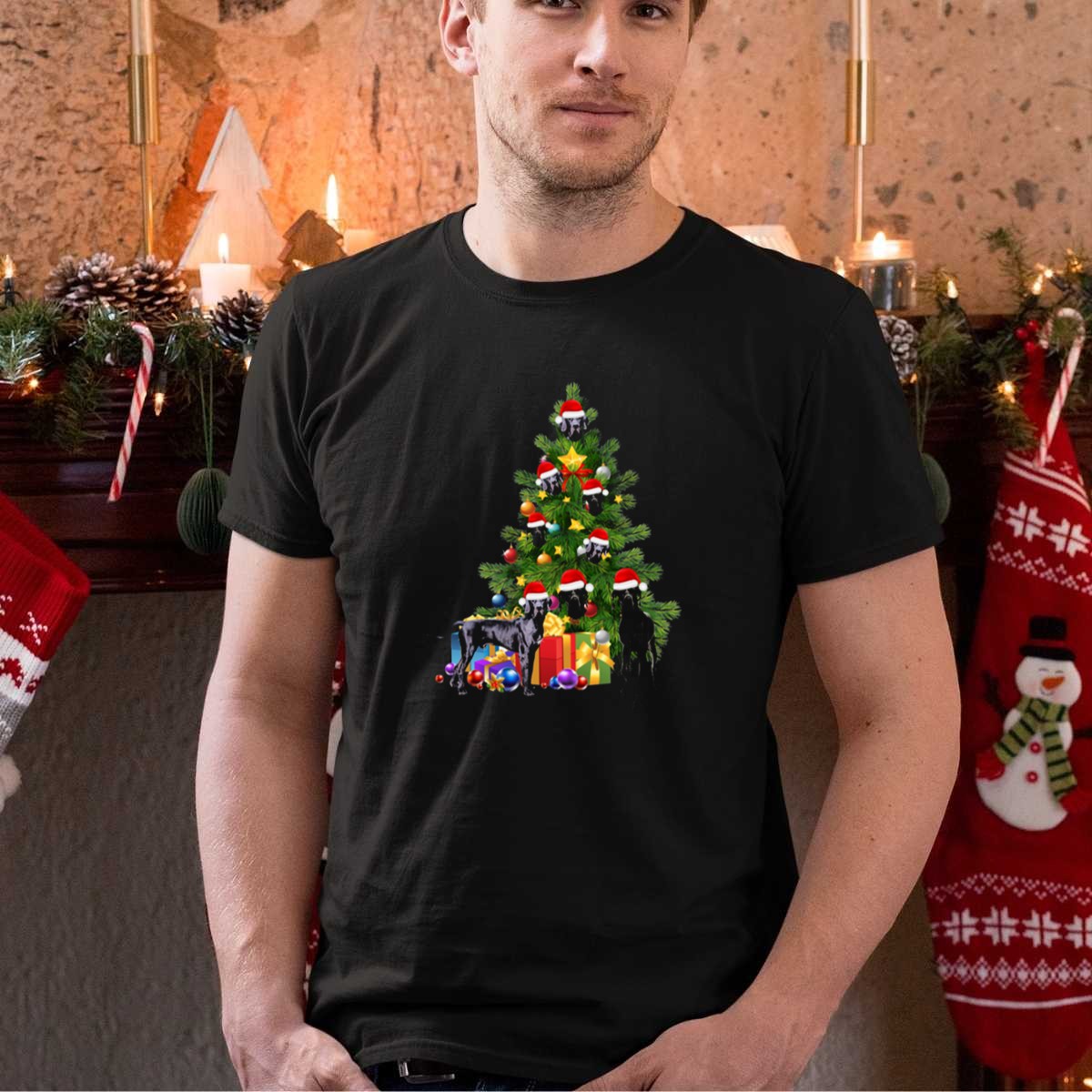 Be the first to review “Great Dane Dogs With Santa Hats On Christmas Tree With Presents And Ornaments T Shirt”