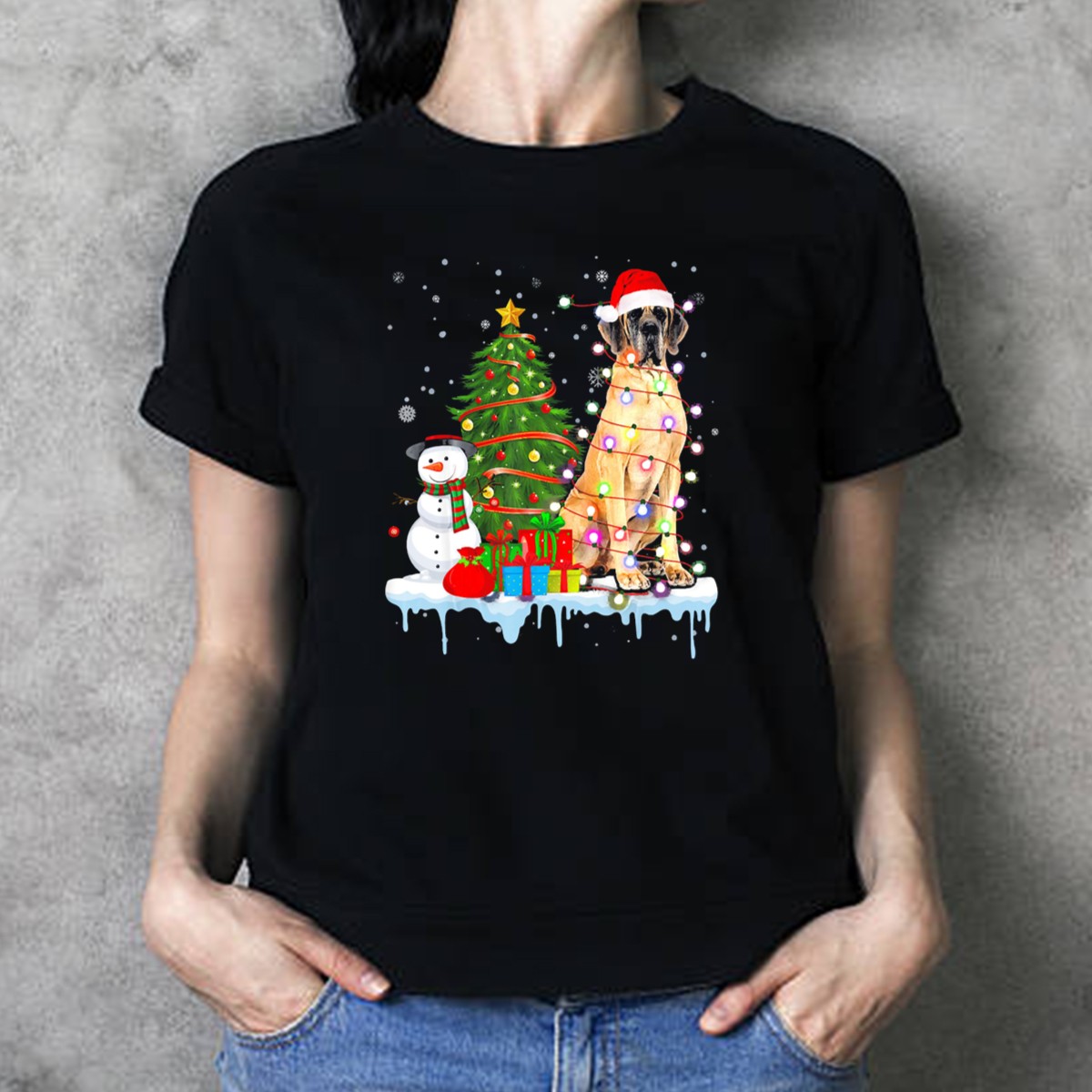 Celebrate the holiday spirit with our Great Dane Santa Hat Christmas Tree Lights Snowman Presents T-Shirt! This playful and festive design is perfect for dog lovers who want to showcase their love for Great Danes during the holiday season. Ideal for casual gatherings, themed events, or simply lounging around, this shirt combines comfort and style, making it a must-have for all your festive occasions. Plus, it’s fan-made and proudly printed in the USA, ensuring a unique touch to your holiday wardrobe.