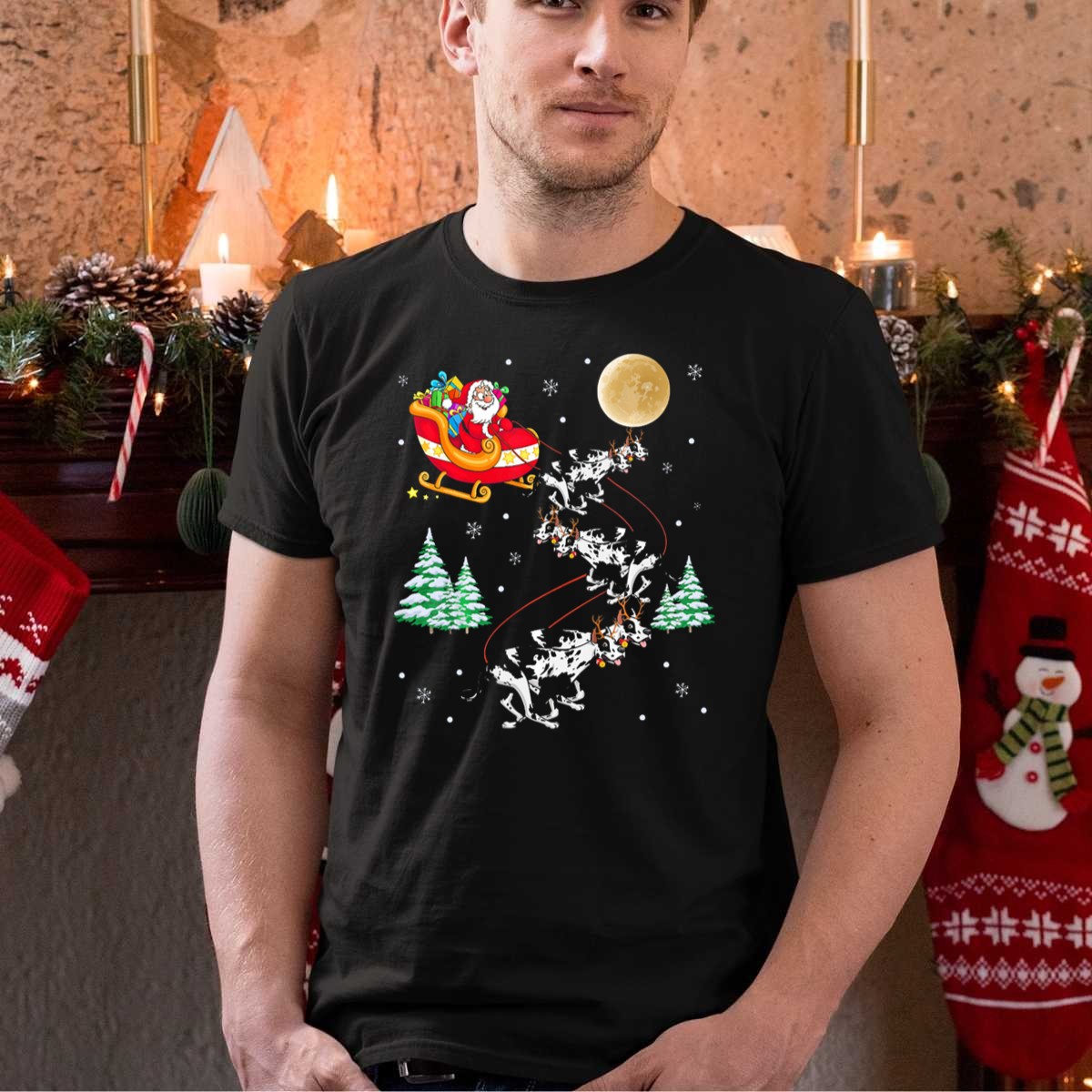 Be the first to review “Great Dane Santa Sleigh Reindeer Christmas Moon Snowflakes T Shirt”