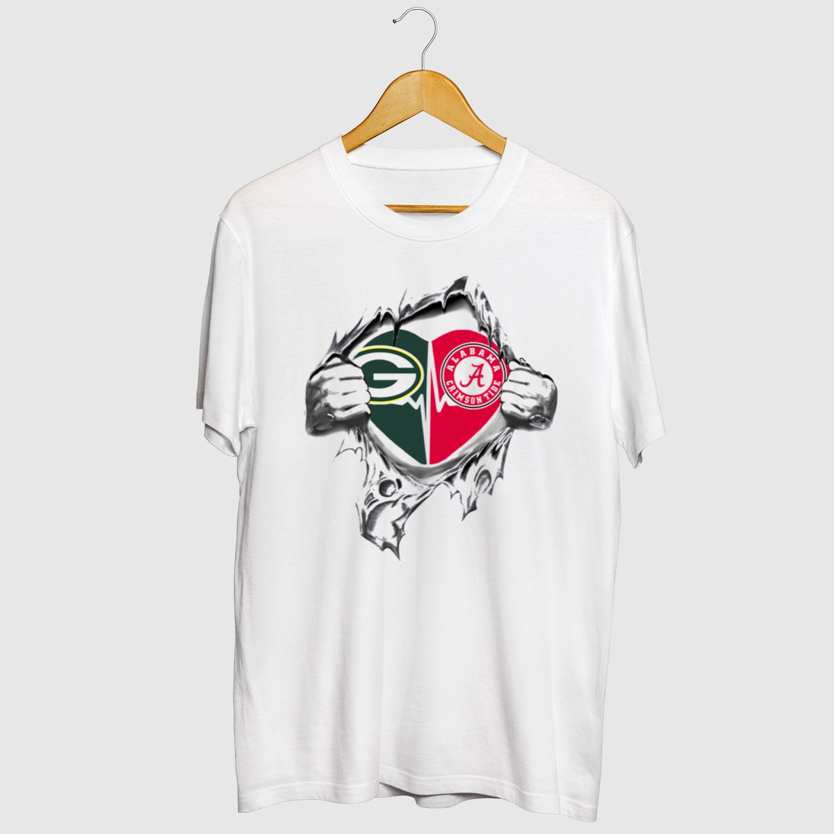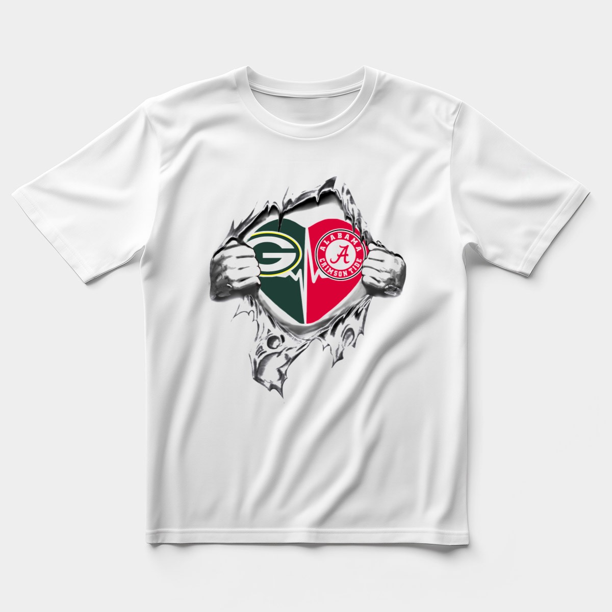 Show your unwavering support for both the Green Bay Packers and Alabama Crimson Tide with this unique fan-made heart design T-shirt! Perfect for game days, casual outings, or themed events, this shirt is designed for true fans who want to represent their teams with pride. Made in the USA, it’s not just a shirt; it’s a statement of loyalty and passion for your favorite teams!