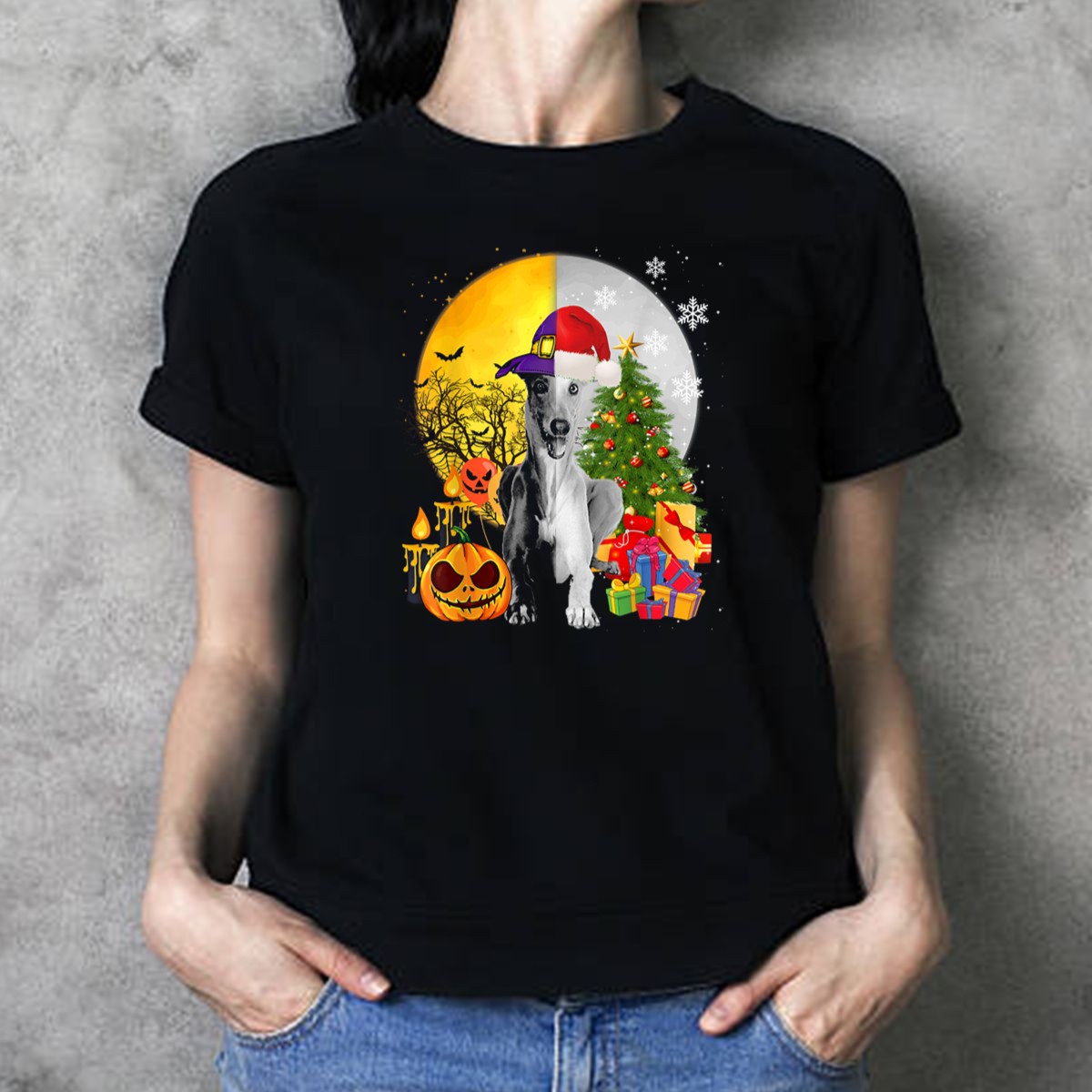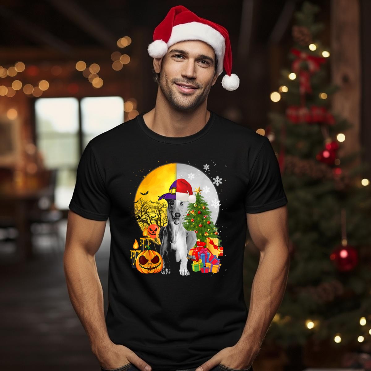 Celebrate the festive spirit of Halloween and Christmas with our Greyhound Halloween Christmas Tree Santa Hat Jack O Lantern T-Shirt! This unique fan-made design is perfect for greyhound lovers who want to showcase their passion during themed events, casual outings, or daily wear. Crafted for comfort and style, this shirt is a must-have for anyone looking to spread holiday cheer while flaunting their love for these wonderful dogs!