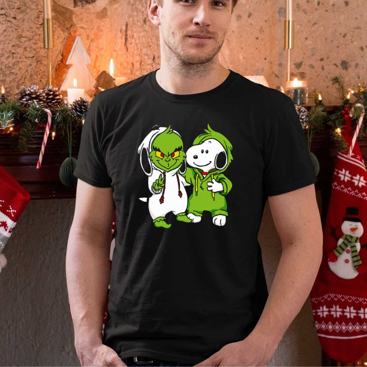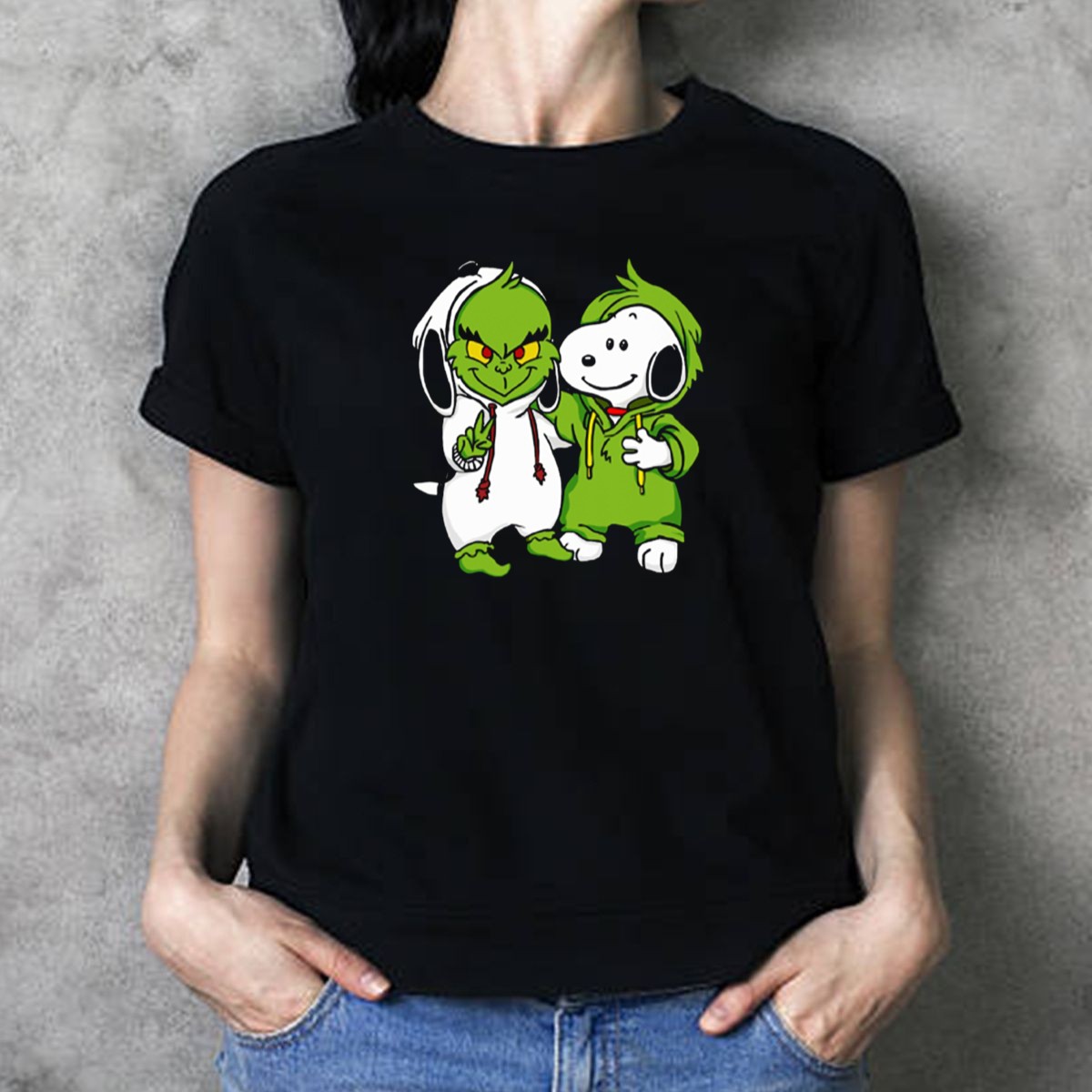 Grinch And Snoopy Christmas Crossover Characters In Festive Hoodies T-Shirt