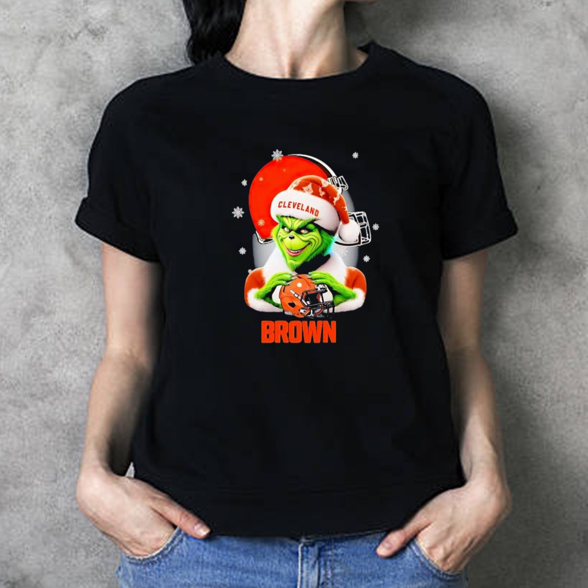 Embrace the holiday spirit while showing off your Cleveland Browns pride with our Grinch Christmas Football Snowflakes T-Shirt! This fan-made design combines the whimsical charm of the Grinch with your favorite football team, making it the perfect addition to your casual wear collection. Ideal for themed events, game days, or just lounging around, this shirt will keep you comfortable and stylish throughout the season.