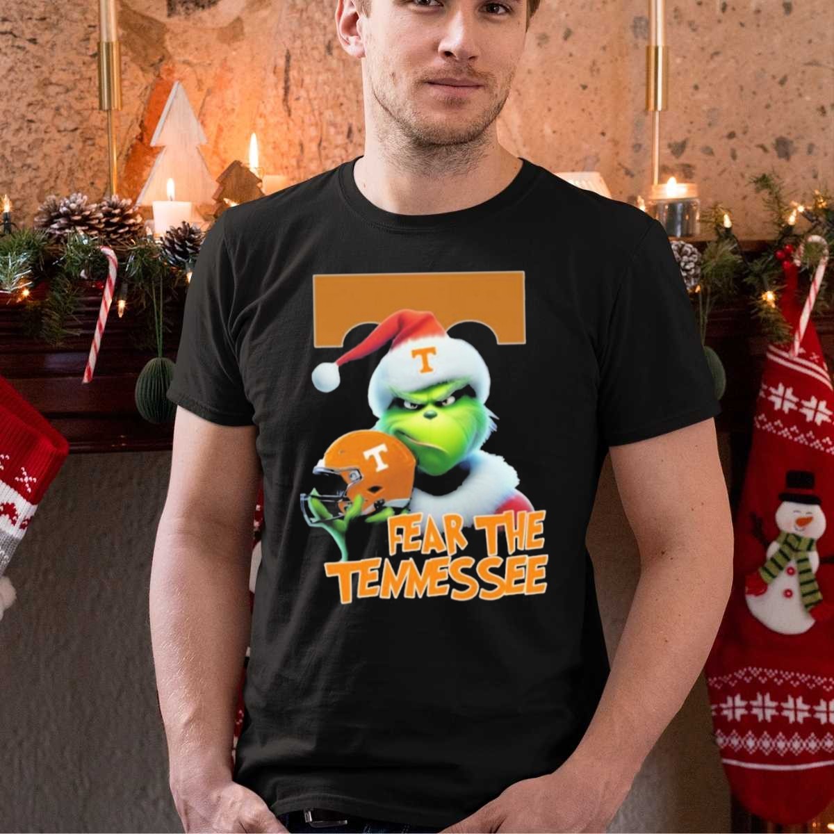 Get ready to spread holiday cheer and show off your team spirit with our Grinch Fear The Tennessee Volunteers Christmas T-Shirt! Perfect for fans of all ages, this fun and festive tee combines the beloved Grinch theme with your passion for the Volunteers. Ideal for casual outings, themed events, or simply lounging at home, this shirt is a must-have for every Tennessee supporter during the holiday season. Made with care in the USA, its unique design captures the essence of both Christmas and college pride!