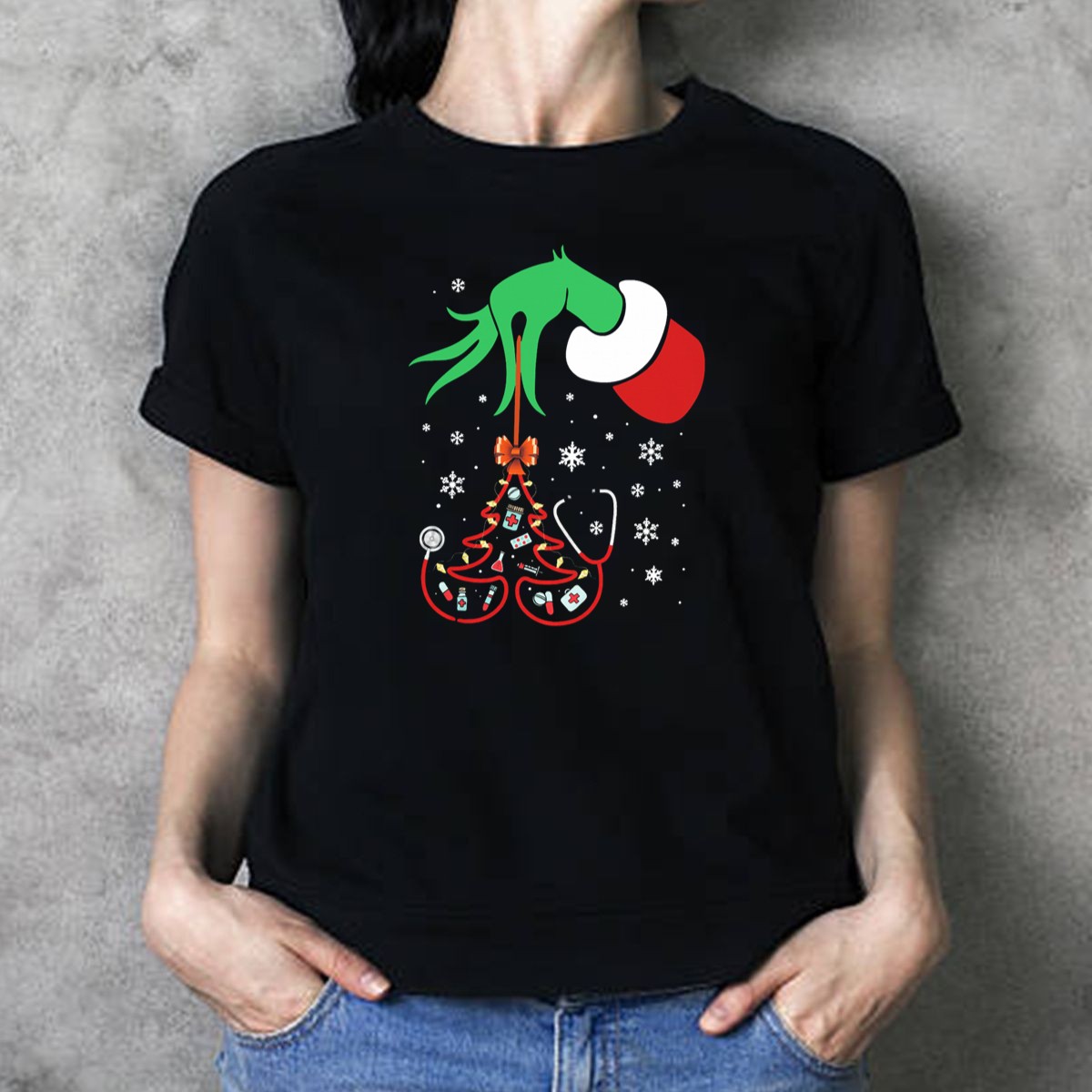 Embrace the holiday spirit with our Grinch Hand Holding Nurse Themed Christmas Tree T-Shirt! Perfect for healthcare professionals and Grinch fans alike, this unique design showcases the festive fusion of nursing and Christmas cheer. Whether you’re at a themed event, casual gathering, or just spreading holiday joy in your daily wear, this shirt is a must-have for celebrating the season with style and humor. Made in the USA, it’s a fun and meaningful way to show off your profession while enjoying the festivities!