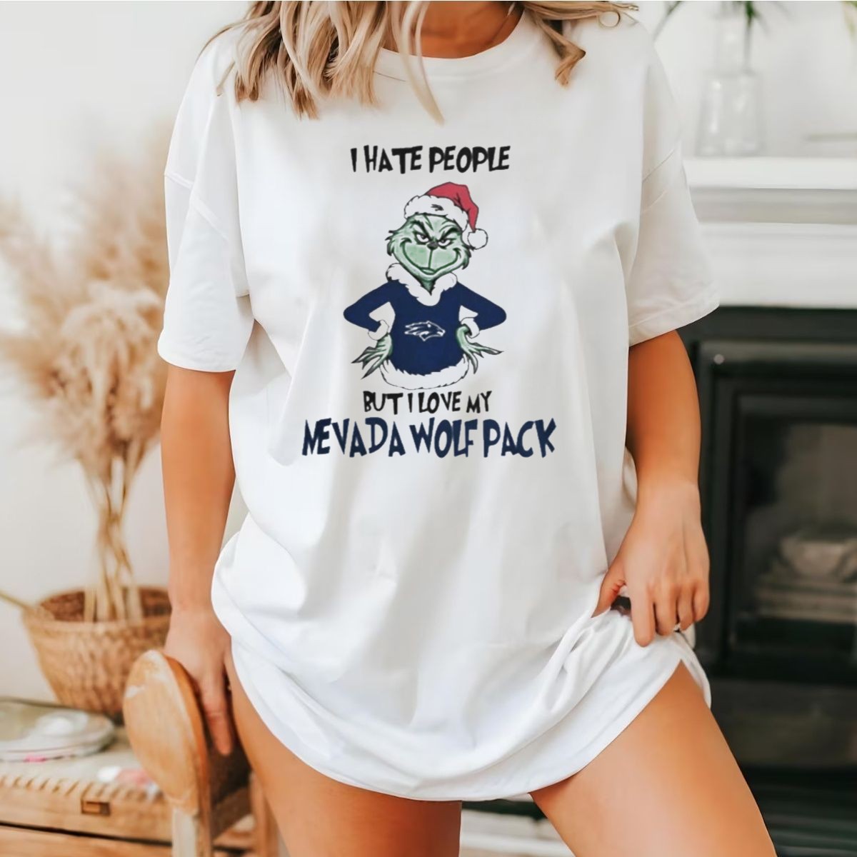 Celebrate the holiday season with a twist of humor in our Grinch I Hate People But I Love My Nevada Wolf Pack Merry Christmas T-Shirt! Perfect for fans of the Wolf Pack who appreciate a cheeky take on festive cheer, this shirt is ideal for casual outings, themed events, or just lounging at home. With its unique fan-made design printed in the USA, it’s a fun way to showcase your team spirit while embracing the Grinch’s iconic attitude!