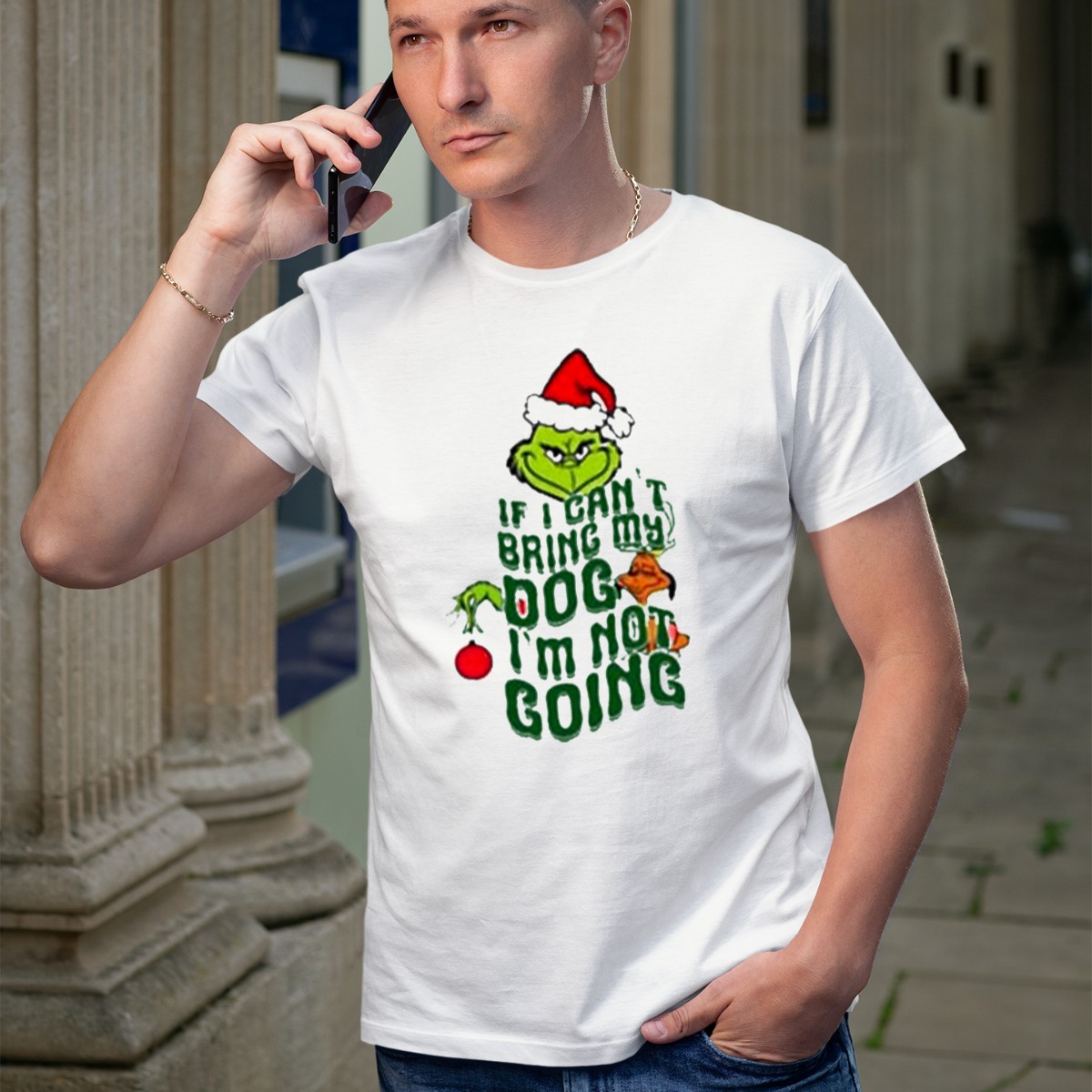 Embrace the holiday spirit with our “Grinch If I Can’t Bring My Dog I’m Not Going” T-Shirt, designed for dog lovers who love to celebrate Christmas in style. This fan-made design is perfect for themed events, casual gatherings, or daily wear during the festive season. With its playful message and comfortable fit, you’ll be spreading cheer and showcasing your love for your furry friend wherever you go!