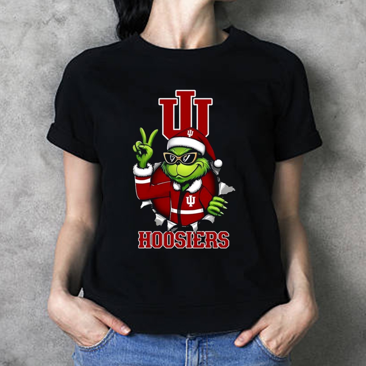 Get into the holiday spirit with our Grinch Indiana Hoosiers Christmas IU Santa T-Shirt! Perfect for fans of all ages, this festive tee combines your love for the Hoosiers with a playful twist on the classic Grinch theme. Ideal for casual outings, themed events, or simply spreading cheer during the festive season, this shirt is designed to keep you comfortable while showcasing your team pride in a fun and unique way.
