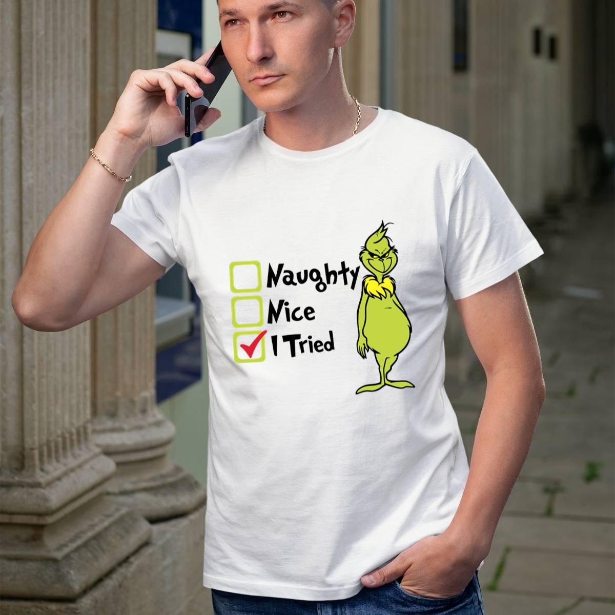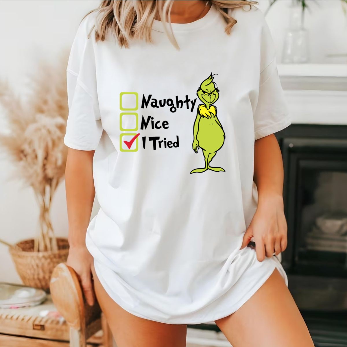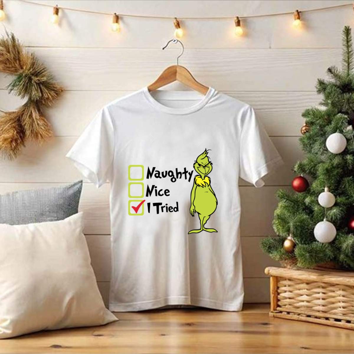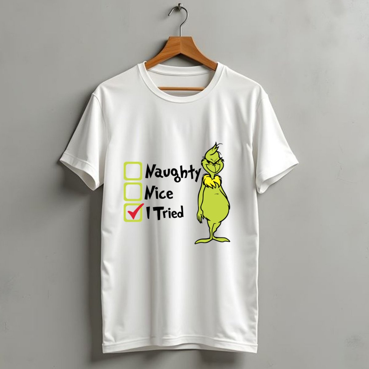 Celebrate the holiday season with a touch of humor in our Grinch Naughty Nice I Tried Christmas T-Shirt! Perfect for those who appreciate a good laugh during festive gatherings, this shirt is designed for anyone who enjoys playful holiday spirit. Whether you’re attending a themed event, cozying up for a casual day at home, or spreading cheer at a holiday party, this fan-made design brings a unique flair to your wardrobe, all while being proudly printed in the USA.