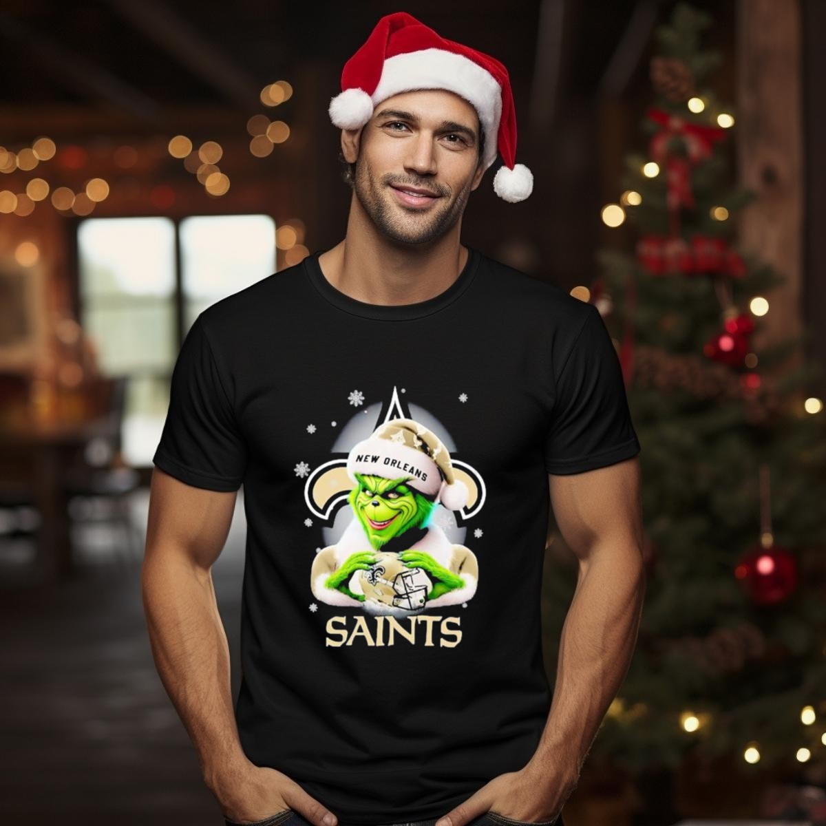 Get ready to spread holiday cheer with our Grinch New Orleans Saints Christmas Snowflakes Football T-Shirt! This fan-made design is perfect for die-hard Saints supporters who want to showcase their team spirit while embracing the festive season. Ideal for casual outings, themed events, or daily wear, this shirt combines comfort with a unique, playful twist that will make you the star of any holiday gathering. Printed in the USA, it’s a must-have for every Saints fan looking to celebrate Christmas in style!