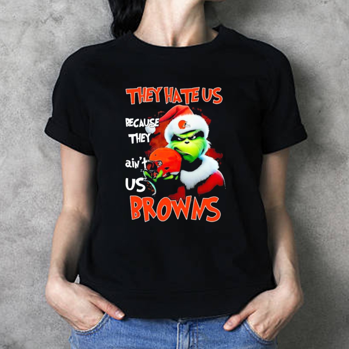 Get into the holiday spirit with our Grinch Santa Hat Browns Helmet “They Hate Us Because They Ain’t Us” Christmas T-Shirt! Perfect for die-hard football fans who love to show off their team pride with a twist of festive fun. This unique shirt is ideal for casual wear, themed events, or just lounging around during the holiday season. Crafted with a fan-made design printed in the USA, it’s a great way to celebrate the season while supporting your favorite team!