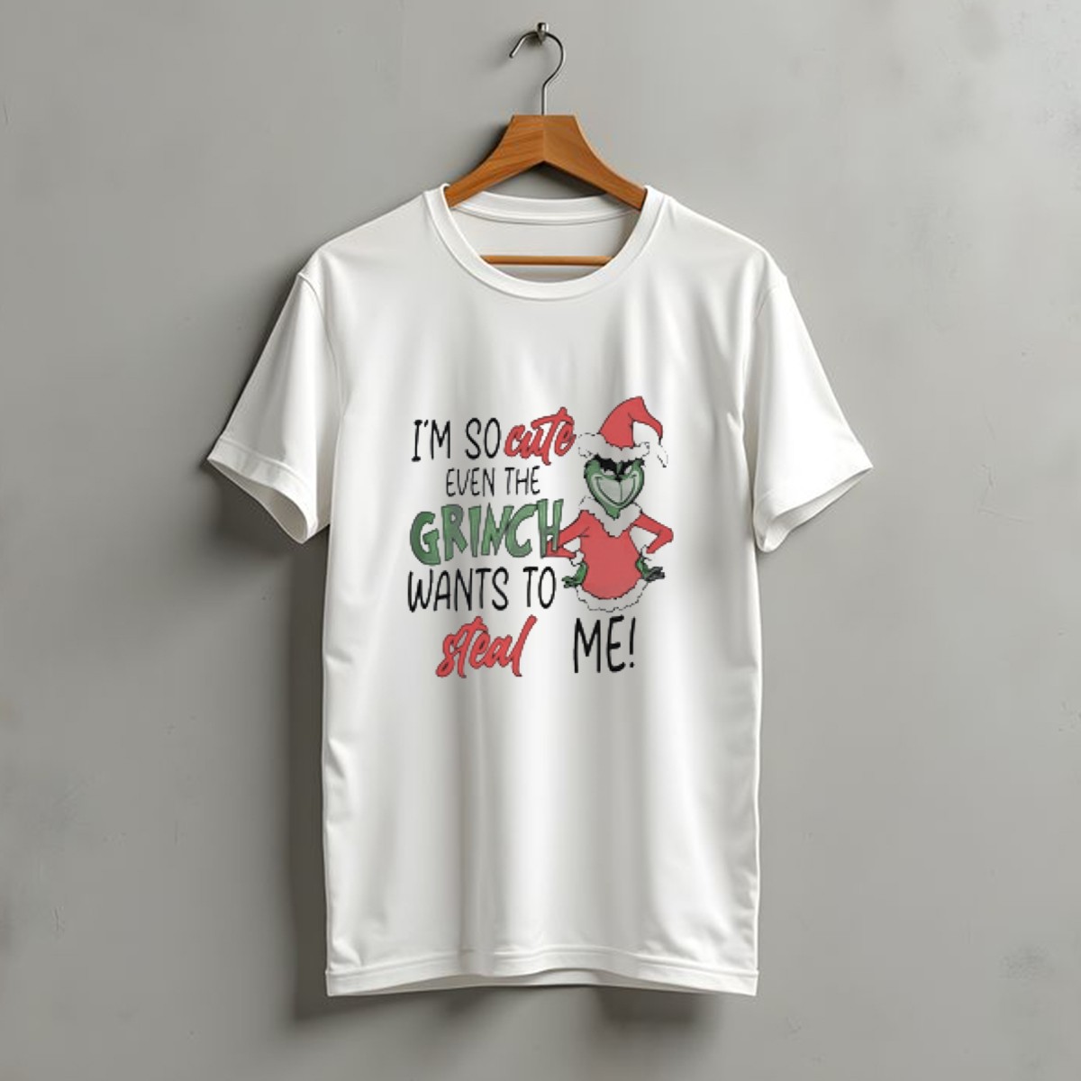 Get into the holiday spirit with our “Grinch Santa I’m So Cute Even The Grinch Wants To Steal Me” T-shirt! Perfect for kids and adults alike, this whimsical design is ideal for family gatherings, themed events, or just spreading cheer during the festive season. Made for those who embrace their playful side, this fan-made shirt showcases a fun twist on a classic Christmas character, making it a unique addition to your seasonal wardrobe.