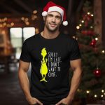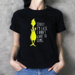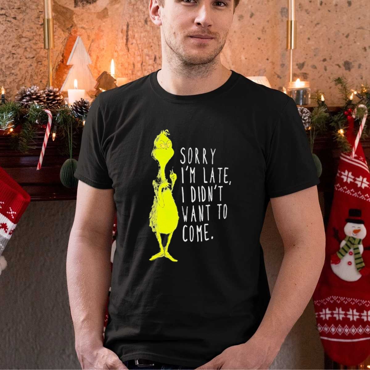 Embrace the holiday spirit with a twist in our Grinch Sorry IM Late I Didn’t Want To Come Christmas T-Shirt! Perfect for those who love to add a pinch of humor to their festive wardrobe, this shirt is a fun way to express your inner Grinch at casual gatherings, themed events, or during daily wear throughout the season. Made for fans who appreciate a clever design, this shirt is not just a piece of clothing, but a statement of your unique personality, printed right here in the USA!