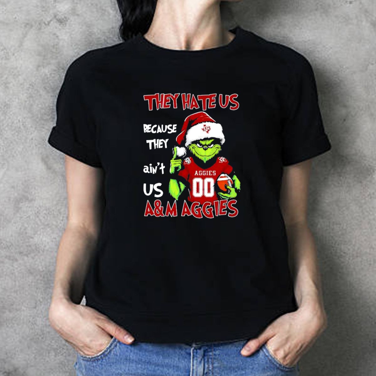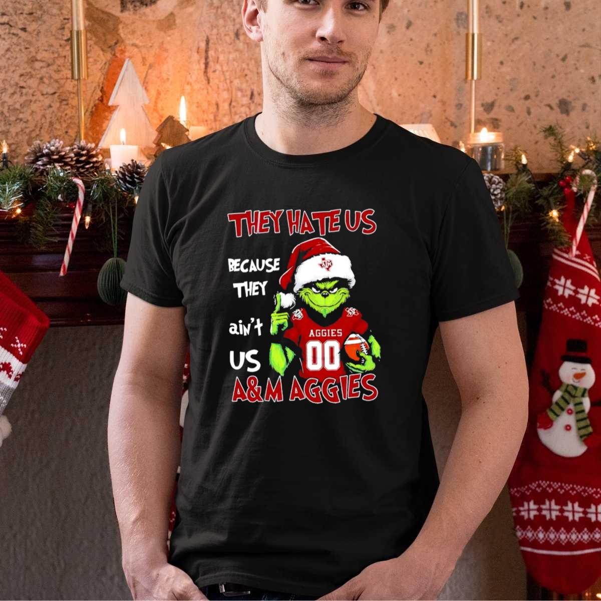 Get ready to show off your holiday spirit and school pride with our Grinch Texas AM Aggies “They Hate Us Because They Ain’t Us” Christmas T-Shirt! This fan-made design is perfect for Aggies who want to celebrate the festive season while proudly representing their team. Ideal for casual wear, themed events, or simply lounging around, this shirt combines comfort with a fun twist that’s sure to spark conversations. Printed in the USA, it’s a unique addition to your wardrobe that captures the essence of both Christmas cheer and Aggie pride.