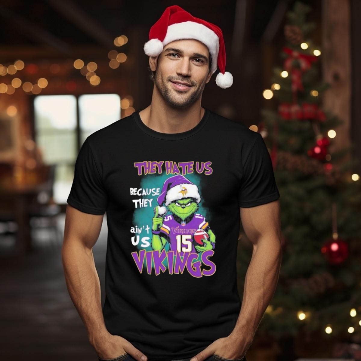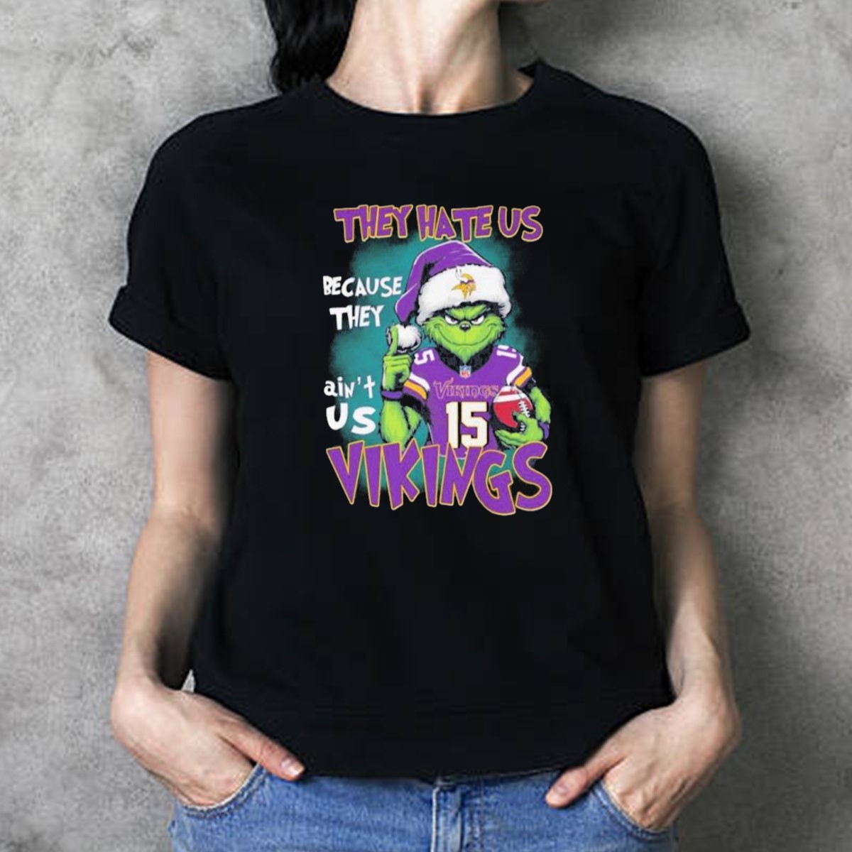 Get ready to show off your team spirit this holiday season with our Grinch X Minnesota Vikings “They Hate Us Because They Ain’t Us” T-Shirt! Perfect for die-hard Vikings fans, this shirt combines festive cheer with a love for football. Ideal for casual outings, themed events, or simply lounging at home, its unique fan-made design printed in the USA is sure to make a statement and spread holiday joy while supporting your favorite team.