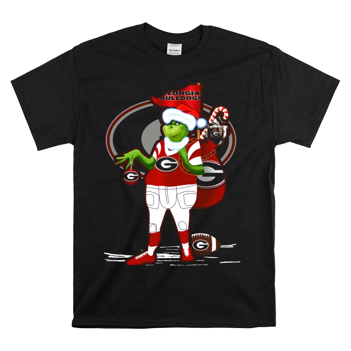 Grinchxmas Georgia Bulldogs Football Santa Sack Candy Cane T Shirt