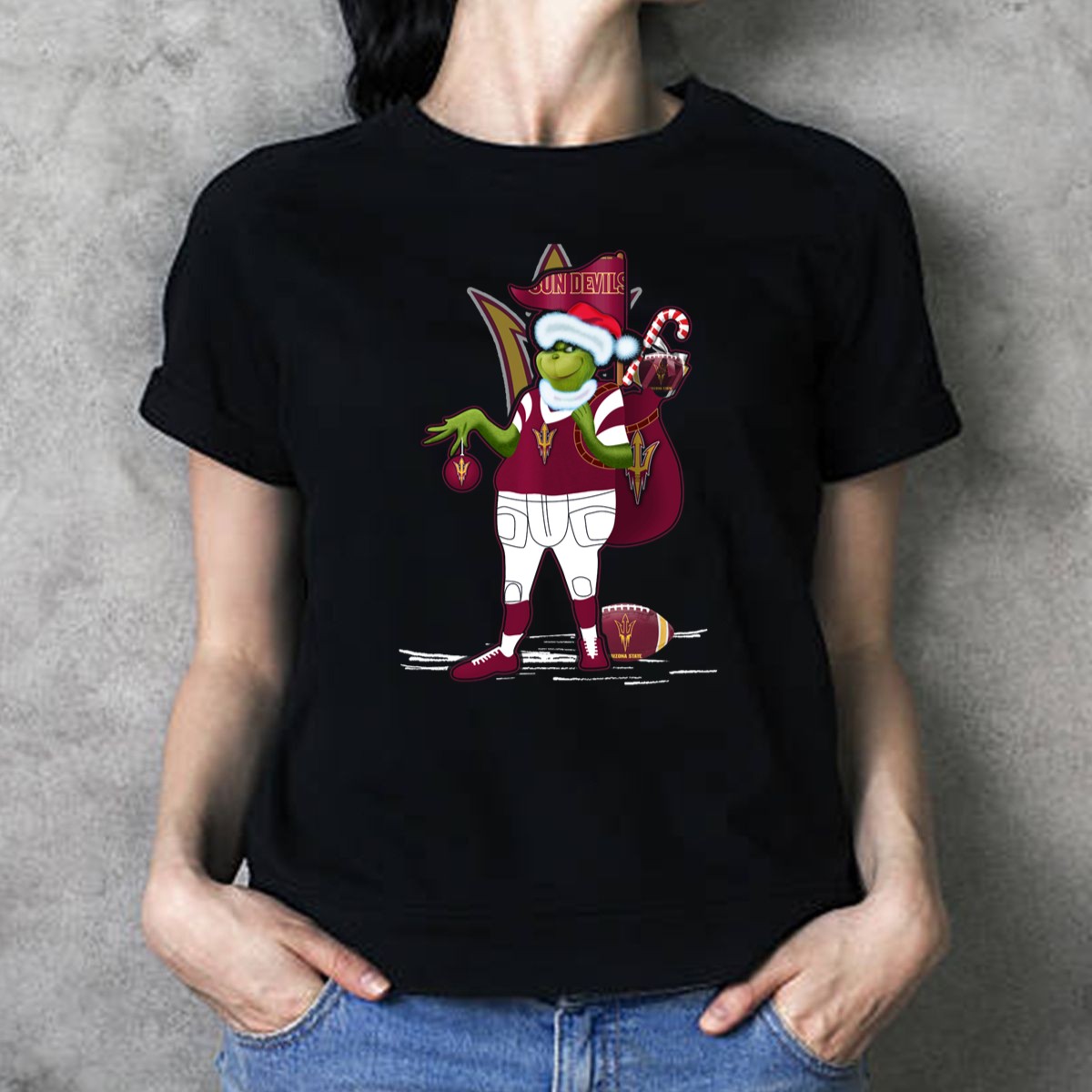 Celebrate the holiday season with a twist of fun in our Grinchxmas Sun Devils Arizona State University Christmas T-Shirt! Perfect for ASU fans looking to showcase their spirit during festive gatherings or casual outings, this shirt combines the beloved Grinch theme with your school pride. Crafted with comfort in mind, it’s an ideal choice for themed events, daily wear, or just lounging around while spreading Christmas cheer.