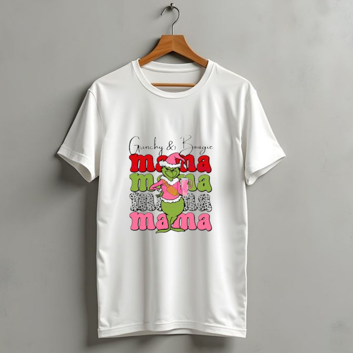 Be the first to review “Grinchy And Bougie Mama Christmas With Festive Grinch Holding Champagne T-Shirt”