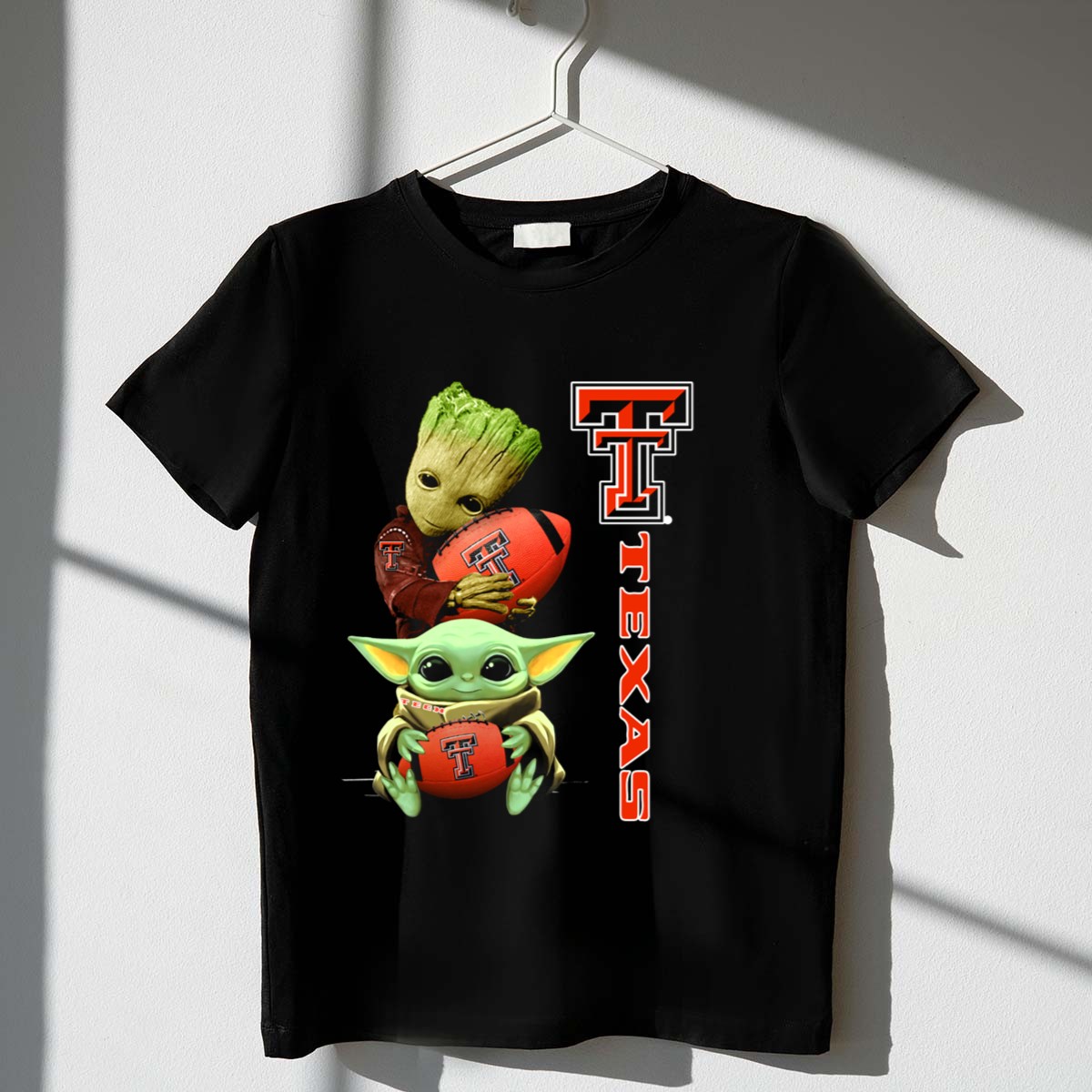 Show off your love for Texas Tech and the cutest duo in the galaxy with our Groot Baby Yoda Texas Tech Football T-Shirt! Perfect for fans of all ages, this shirt combines a playful design featuring beloved characters with the spirit of college football. Whether you’re cheering from the stands or hanging out with friends, this shirt ensures you stay comfortable and stylish. Made for everyday wear, it’s a must-have for any Texas Tech enthusiast looking to celebrate their fandom in a fun and unique way.