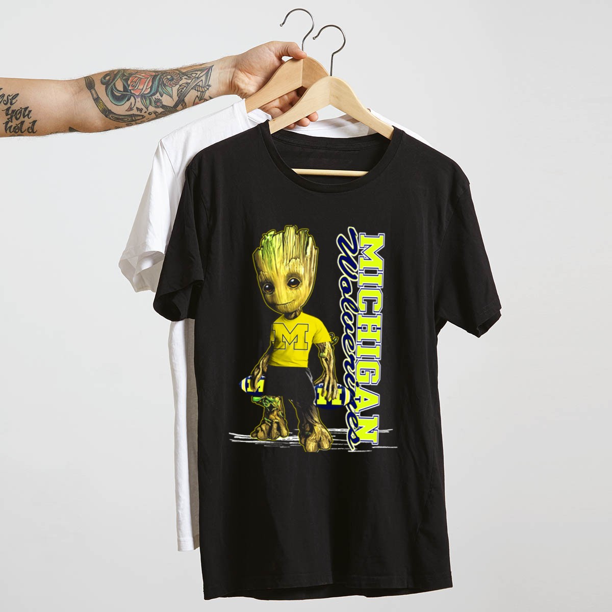 Show off your love for the Michigan Wolverines with our Groot Michigan Wolverines M Logo Skating Fan T-Shirt! This fan-made design is perfect for dedicated Wolverines supporters who enjoy casual outings, themed events, or simply want to showcase their team spirit in style. Crafted for comfort and durability, this shirt is ideal for all-season wear, making it a versatile addition to your wardrobe.