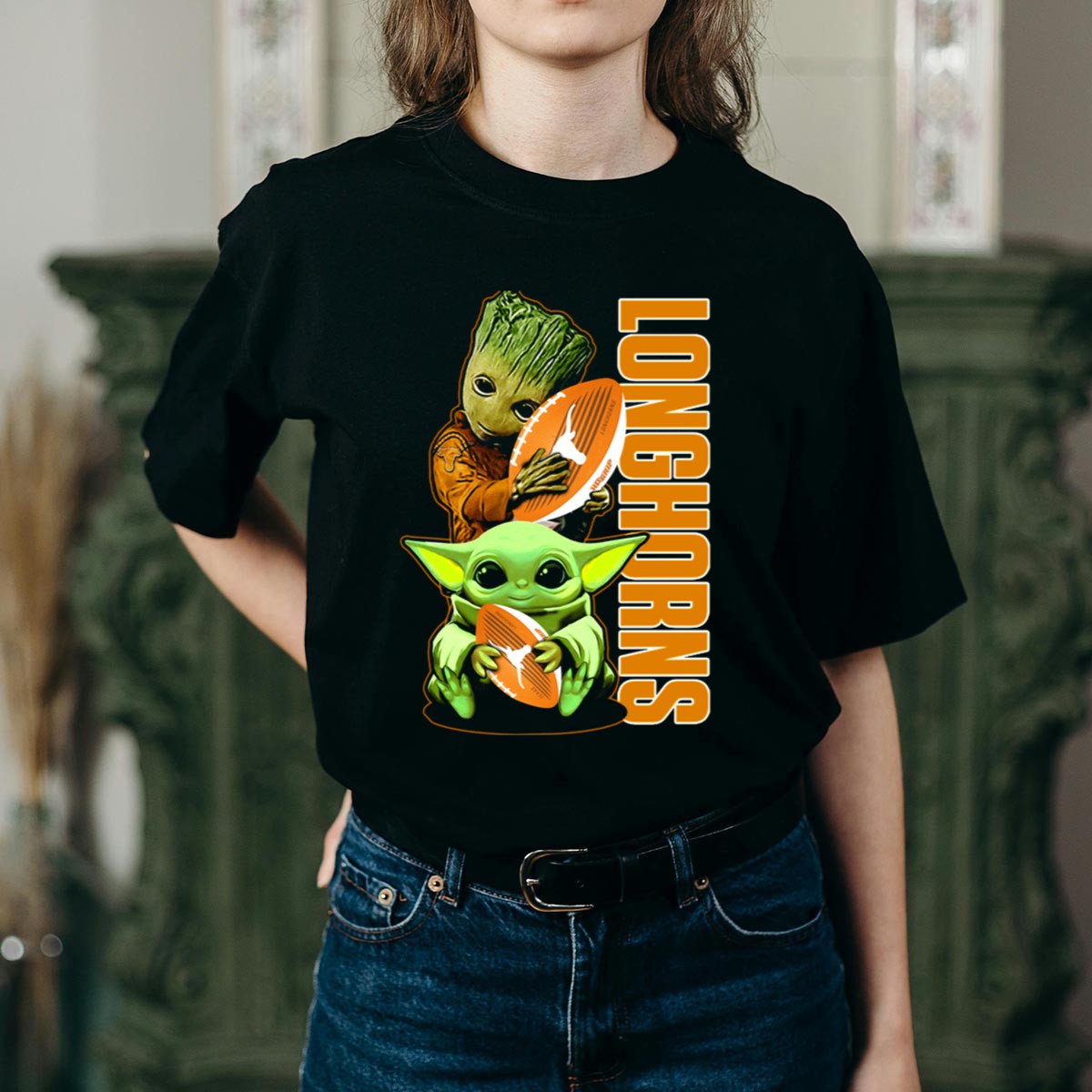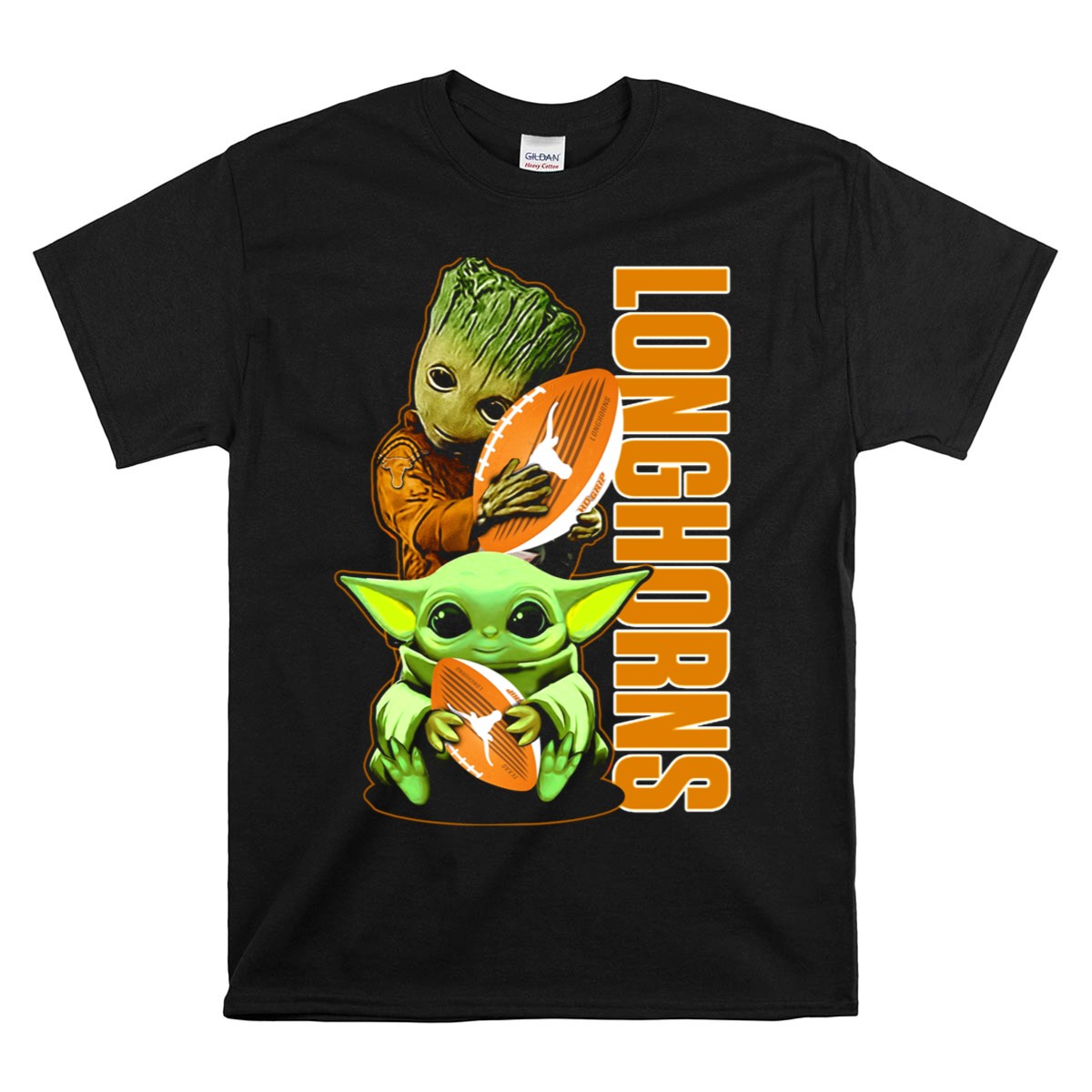 Show your Texas Longhorns spirit with our Grzd Texas Longhorns Football Grogu Groot T-Shirt! Perfect for fans of all ages, this shirt combines the beloved Grogu and Groot characters with your favorite college team, making it an ideal choice for game days, casual outings, or themed events. Crafted for comfort and style, it’s a unique way to showcase your team pride while enjoying a soft and breathable fit.