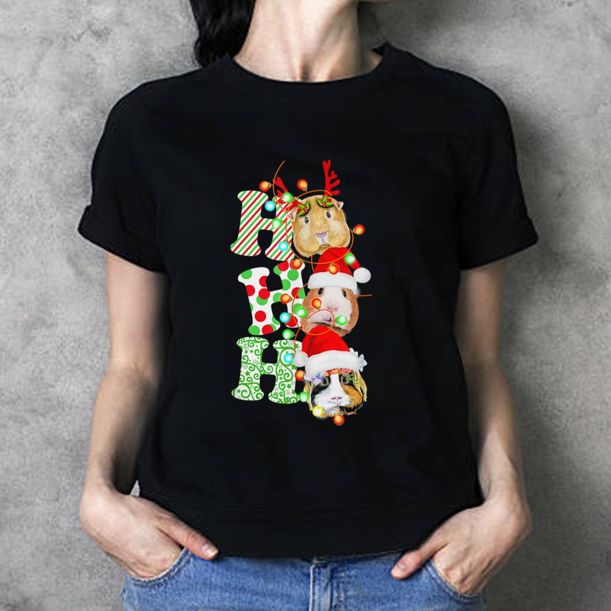 Be the first to review “Guinea Pig Santa Ho Ho Christmas Reindeer Hat Lights T-Shirt”