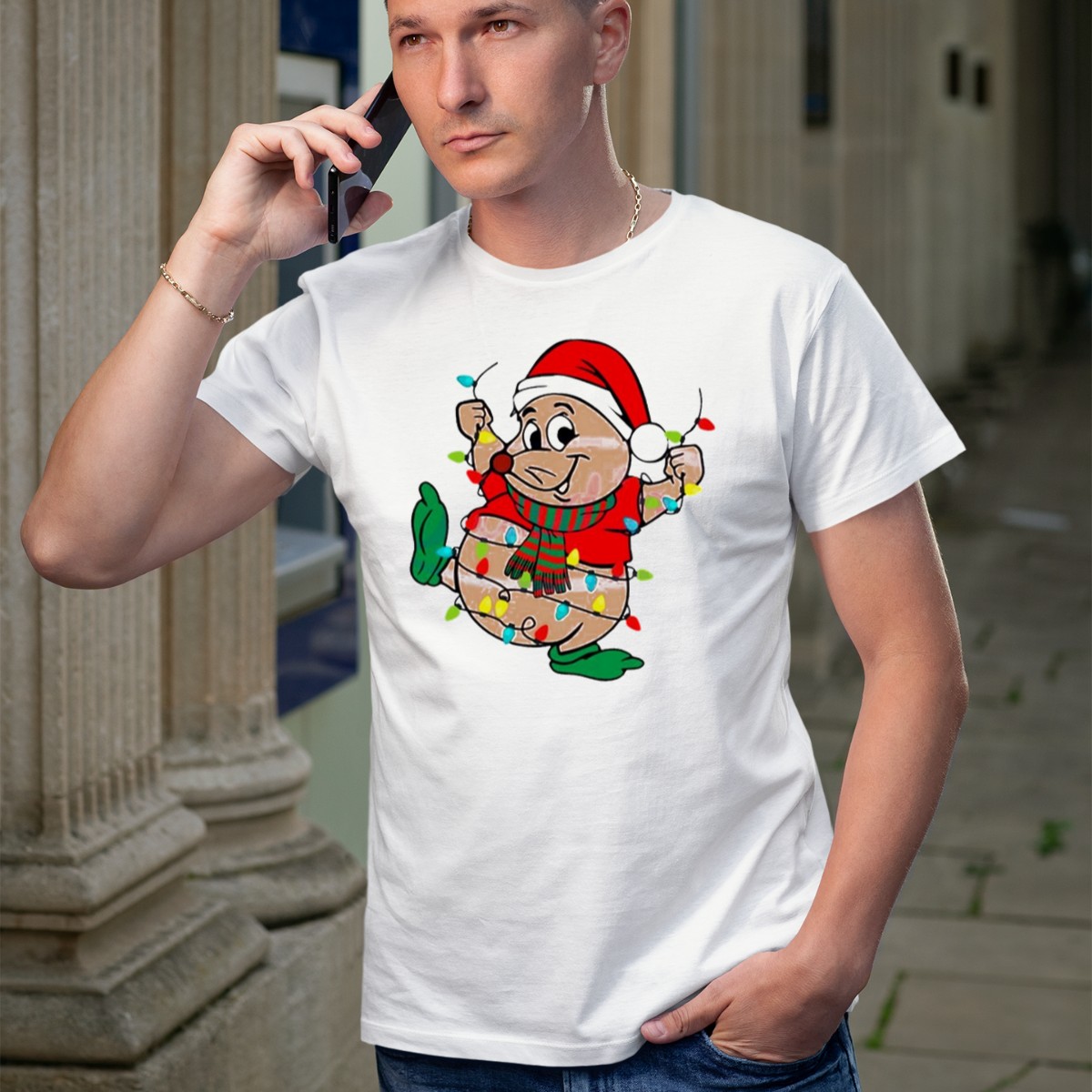 Be the first to review “Gus Santa Hat Christmas Lights Cozy Festive Character With Bright Holiday Spirit T-Shirt”