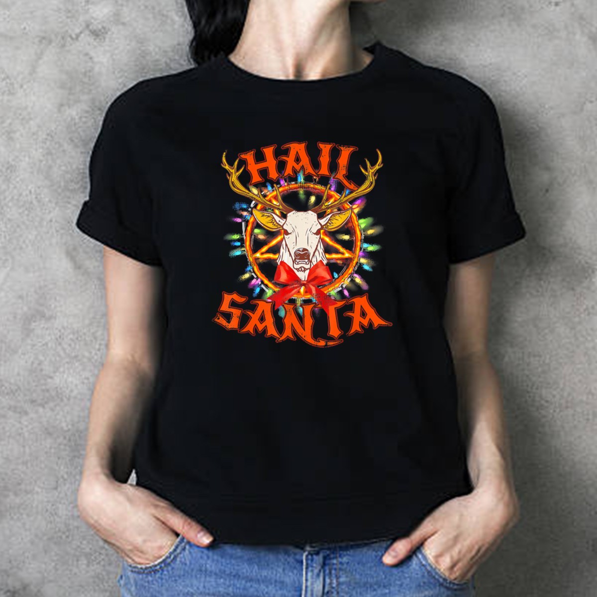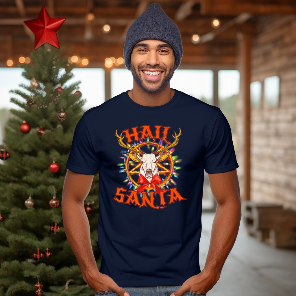 Celebrate the festive spirit with our Hail Santa Christmas Reindeer T-Shirt, designed for those who love to embrace the holiday cheer in style! This fan-made graphic tee features a unique reindeer design adorned with a pentagram and twinkling lights, making it perfect for casual wear, themed events, or simply spreading joy during the holiday season. Crafted from soft, breathable cotton, this shirt ensures comfort while you enjoy all your seasonal festivities.