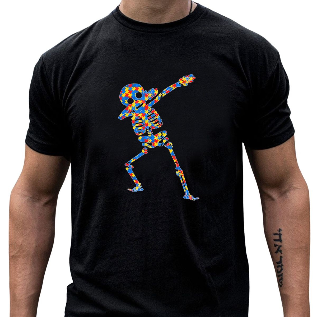 Be the first to review “Halloween Autism Skeleton Dabbing Puzzle Pattern Awareness T-Shirt”