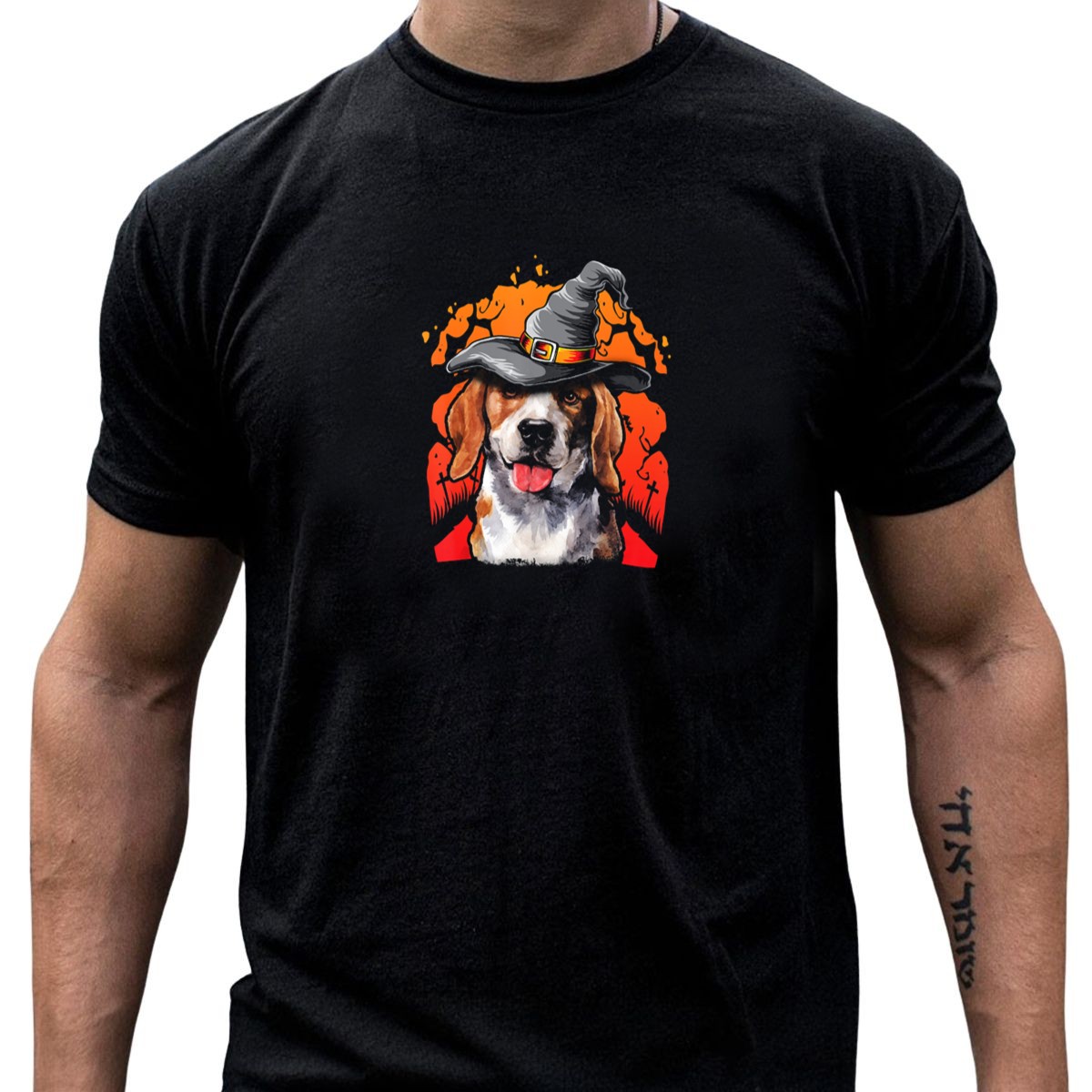 Celebrate the spookiest season in style with our Halloween Beagle Witch Hat Spooky Graveyard Scene T-Shirt! Perfect for dog lovers and Halloween enthusiasts alike, this shirt features a whimsical design showcasing a beagle wearing a witch hat amidst a spooky graveyard backdrop. Ideal for casual wear, themed events, or just lounging at home, this fan-made creation is printed in the USA, making it a unique addition to your Halloween wardrobe.