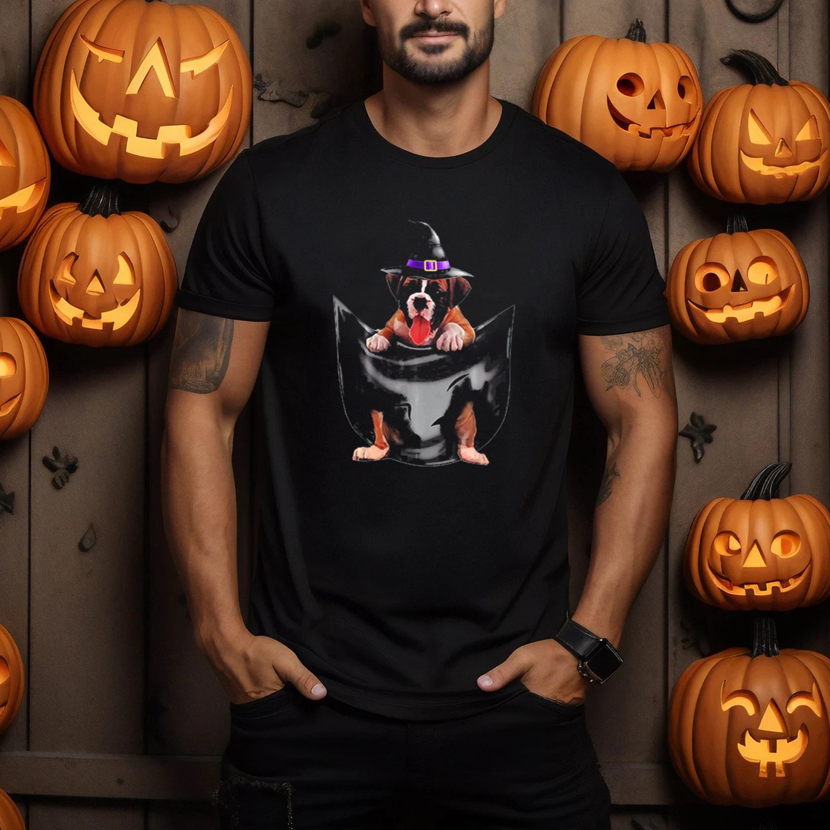 Get ready for a howl of a good time with our Halloween Boxer Dog In Pocket With Witch Hat Funny Dog T-Shirt! This playful design is perfect for dog lovers and those who enjoy a dash of humor in their casual wear. Ideal for themed events, Halloween parties, or just a cozy day at home, this shirt combines comfort with a fun twist that will surely turn heads. Made for every dog enthusiast, this fan-made design is printed in the USA, ensuring you wear a piece that’s both unique and high-quality.