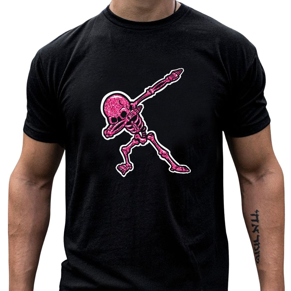 Get ready to stand out this Halloween with our Dabbing Skeleton Glittery Hot Pink Hip Hop T-Shirt! Perfect for those who love to combine fun and flair, this fan-made design celebrates the spooky season with a playful twist. Ideal for casual wear, themed events, or just making a statement on a daily basis, this shirt is sure to turn heads and spark conversations wherever you go. Made in the USA, it’s a unique addition to any Halloween wardrobe!