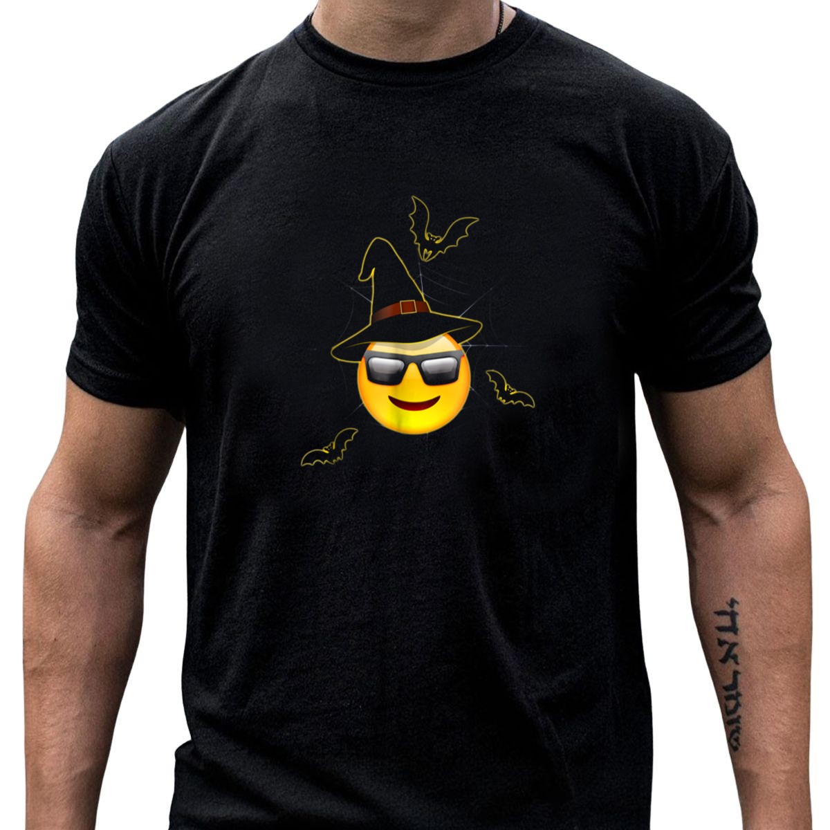 Be the first to review “Halloween Emoji Witch Smiling Face With Sunglasses And Bats T-Shirt”