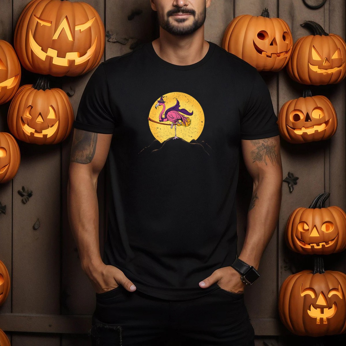 Get ready to celebrate Halloween in style with our fan-made Flamingo Witch Moon Ride T-Shirt! This unique design captures the whimsical spirit of the season, featuring a playful flamingo dressed as a witch soaring through the night sky. Perfect for Halloween parties, casual outings, or just adding a touch of fun to your daily wear, this shirt is a must-have for anyone who loves festive fashion. Made in the USA, it combines creativity with comfort for an unforgettable experience.