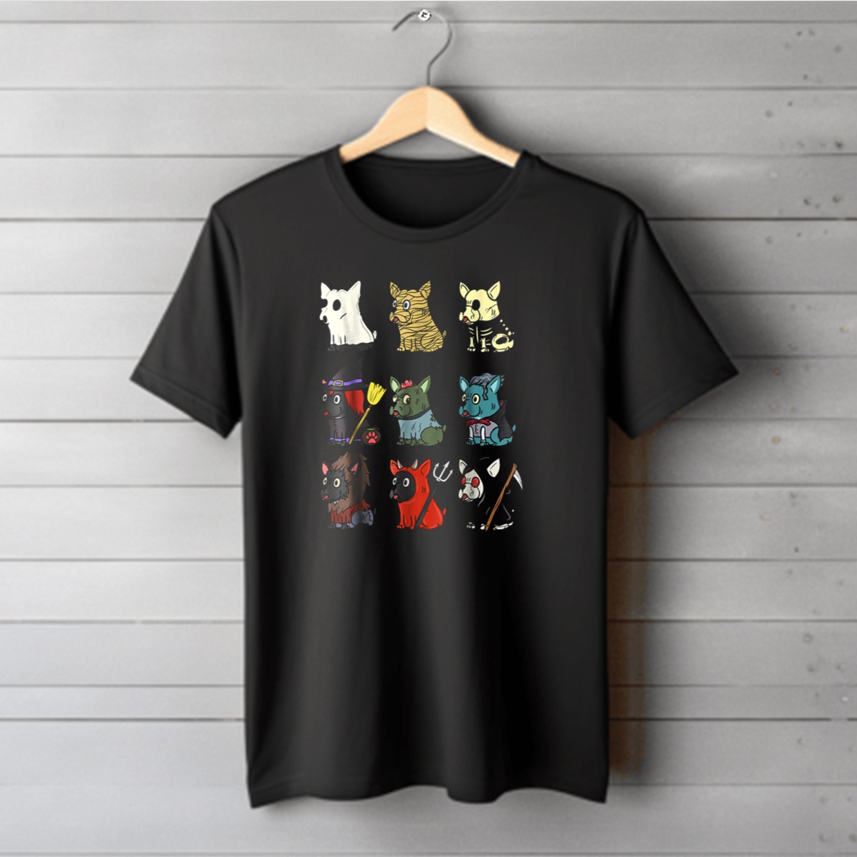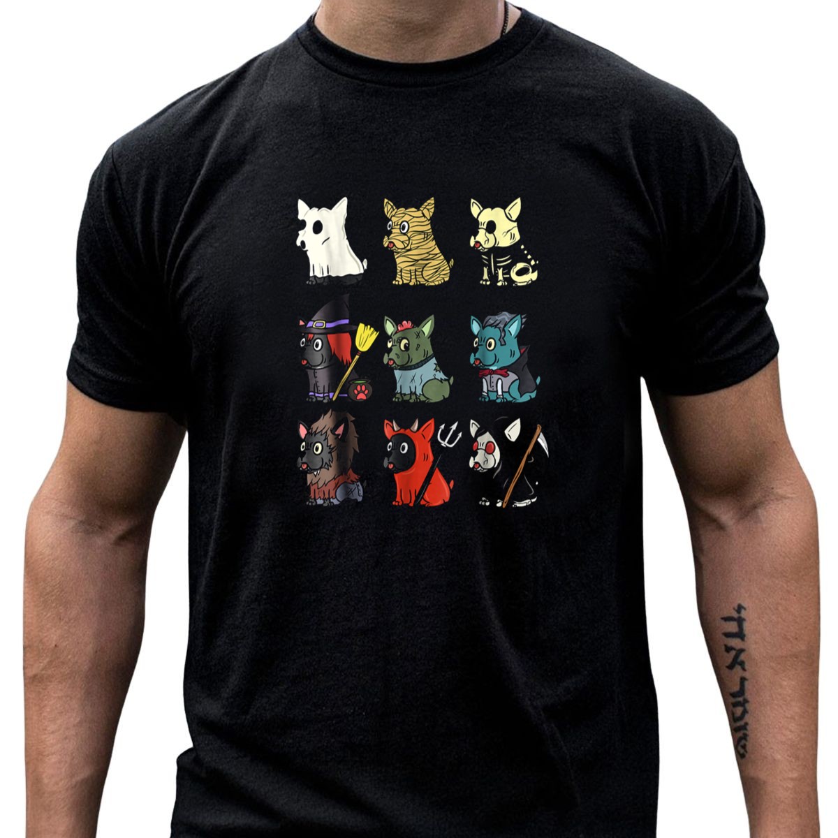 Embrace the spooky spirit of Halloween with our fan-made French Bulldog themed T-shirt, featuring adorable designs of ghosts, mummies, skeletons, witches, Frankensteins, and vampires! Perfect for dog lovers and Halloween enthusiasts alike, this shirt is ideal for casual outings, themed events, or just lounging around the house. Made for comfort and style, it’s a must-have addition to your all-season wardrobe that showcases your love for these charming pups.