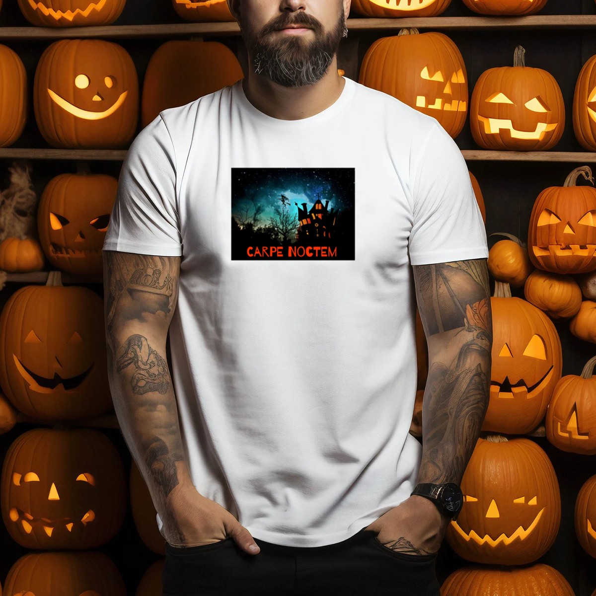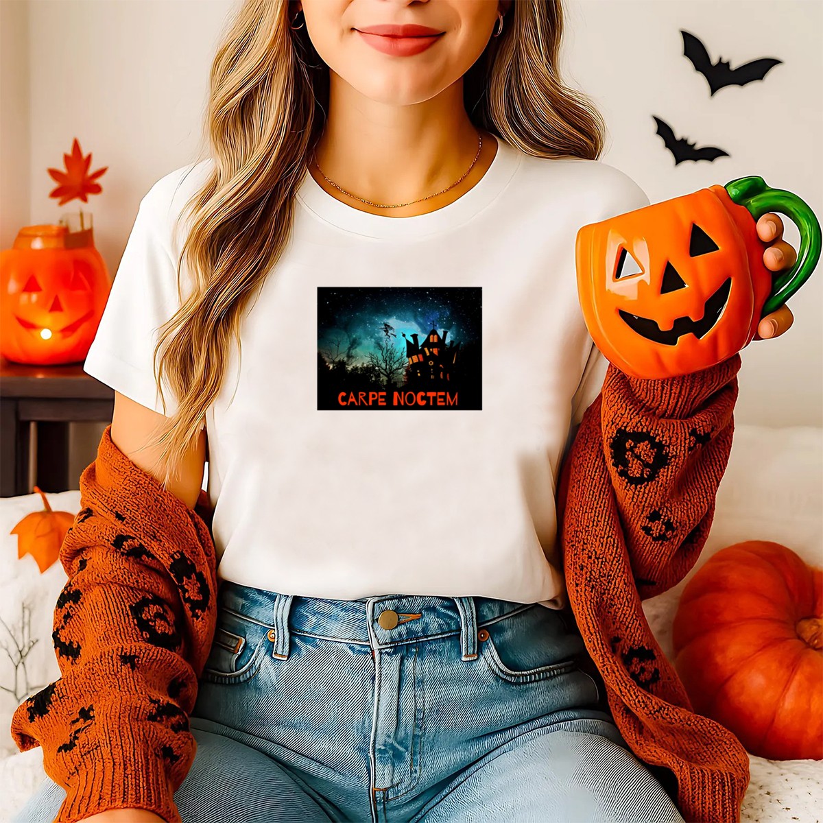 Get ready to embrace the spooky spirit of Halloween with our Halloween Fun Carpe Noctem Seize The Night T-Shirt! Perfect for Halloween enthusiasts and anyone who loves a good fright, this shirt features a hauntingly beautiful silhouette of a haunted house with a witch flying overhead. It’s ideal for casual wear, themed events, or just a fun day out during the spooky season. Made with a fan-made design printed right here in the USA, this shirt is sure to be a conversation starter!