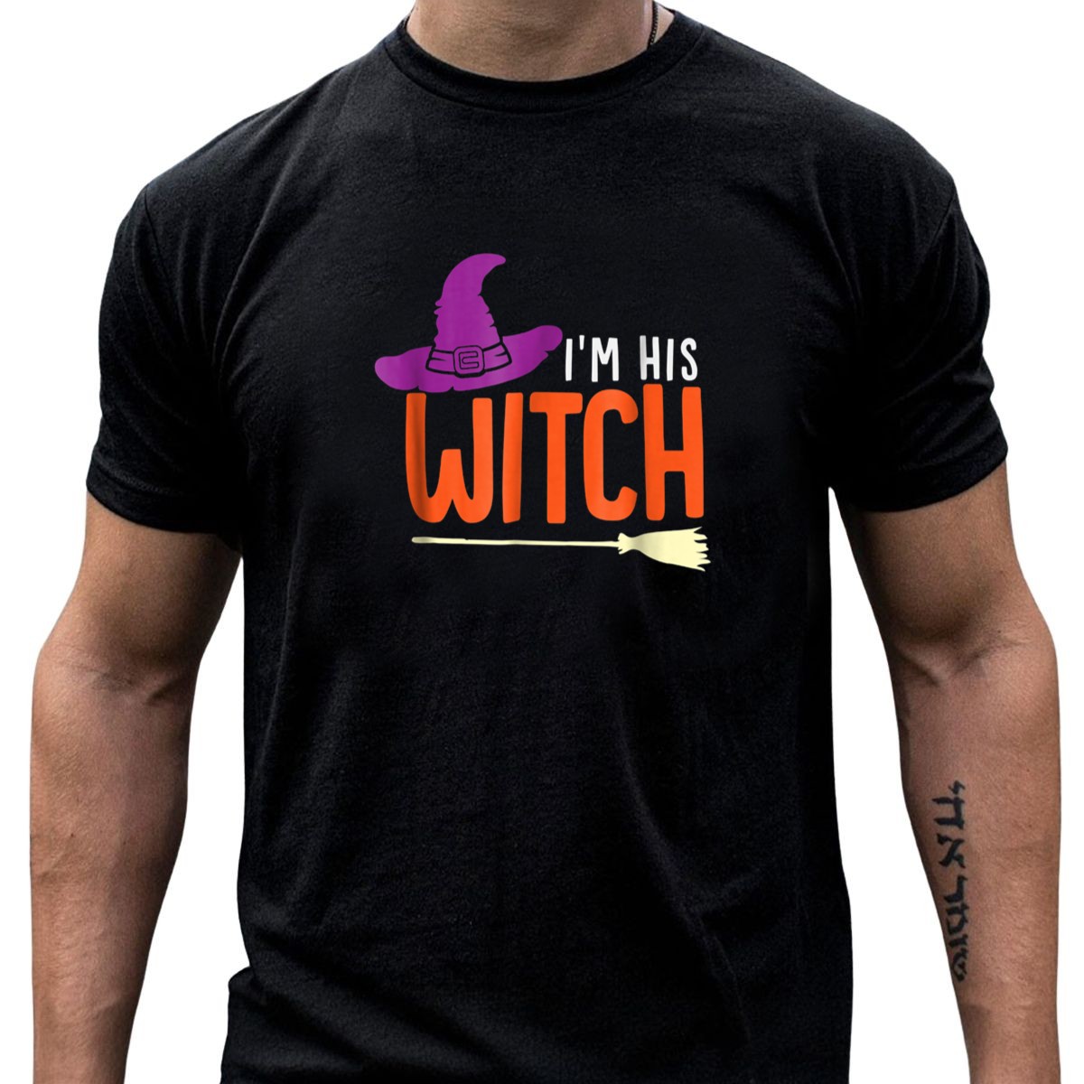 Embrace the spooky season with our Halloween “I’m His Witch” Broomstick Hat T-Shirt, designed for those who love to celebrate in style! Perfect for themed events, casual wear, or daily outings, this fan-made design captures the whimsical spirit of Halloween. Made with care in the USA, it offers a unique touch to your festive wardrobe, making it an ideal choice for witches and wizards alike!