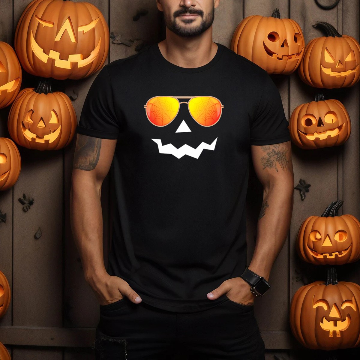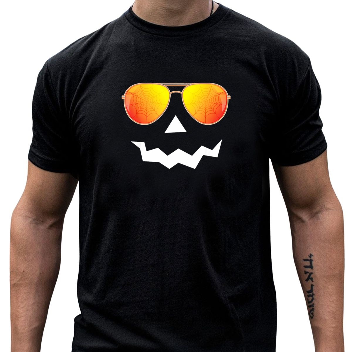 Embrace the spooky spirit of Halloween with our fun and stylish graphic printed T-shirt featuring a vibrant Jack O Lantern sporting sunglasses and a spider web reflection. Perfect for Halloween parties, themed events, or casual outings, this tee is designed for those who love to celebrate the season in style. Made with fan-made artistry, this shirt not only showcases your festive flair but also supports local printing in the USA.