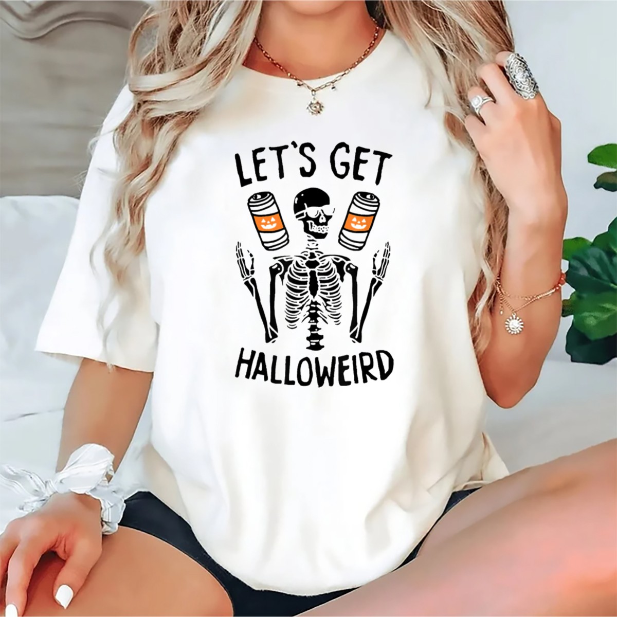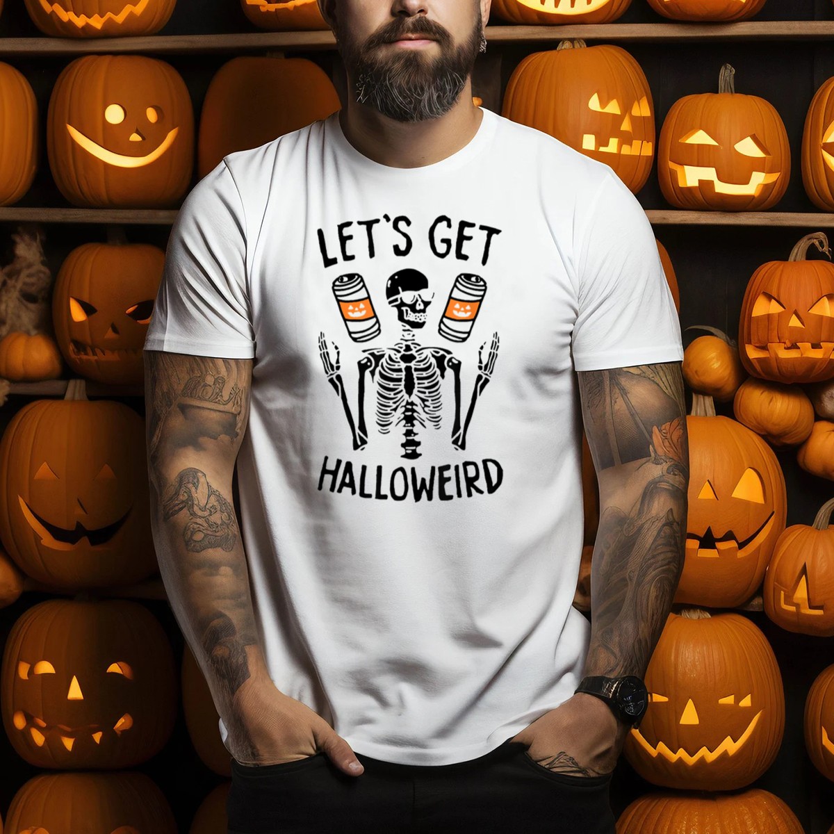 Get ready to embrace the spooky spirit of Halloween with our “Let’s Get Halloweird” Skeleton with Pumpkin Beer Cans T-Shirt! Perfect for those who love to celebrate the season in style, this fun and festive tee is ideal for casual wear, themed events, or daily outings. Made for fans who appreciate a quirky twist on Halloween attire, this shirt showcases a playful design that’s sure to turn heads and spark conversations. Plus, it’s printed right here in the USA, ensuring quality and originality.