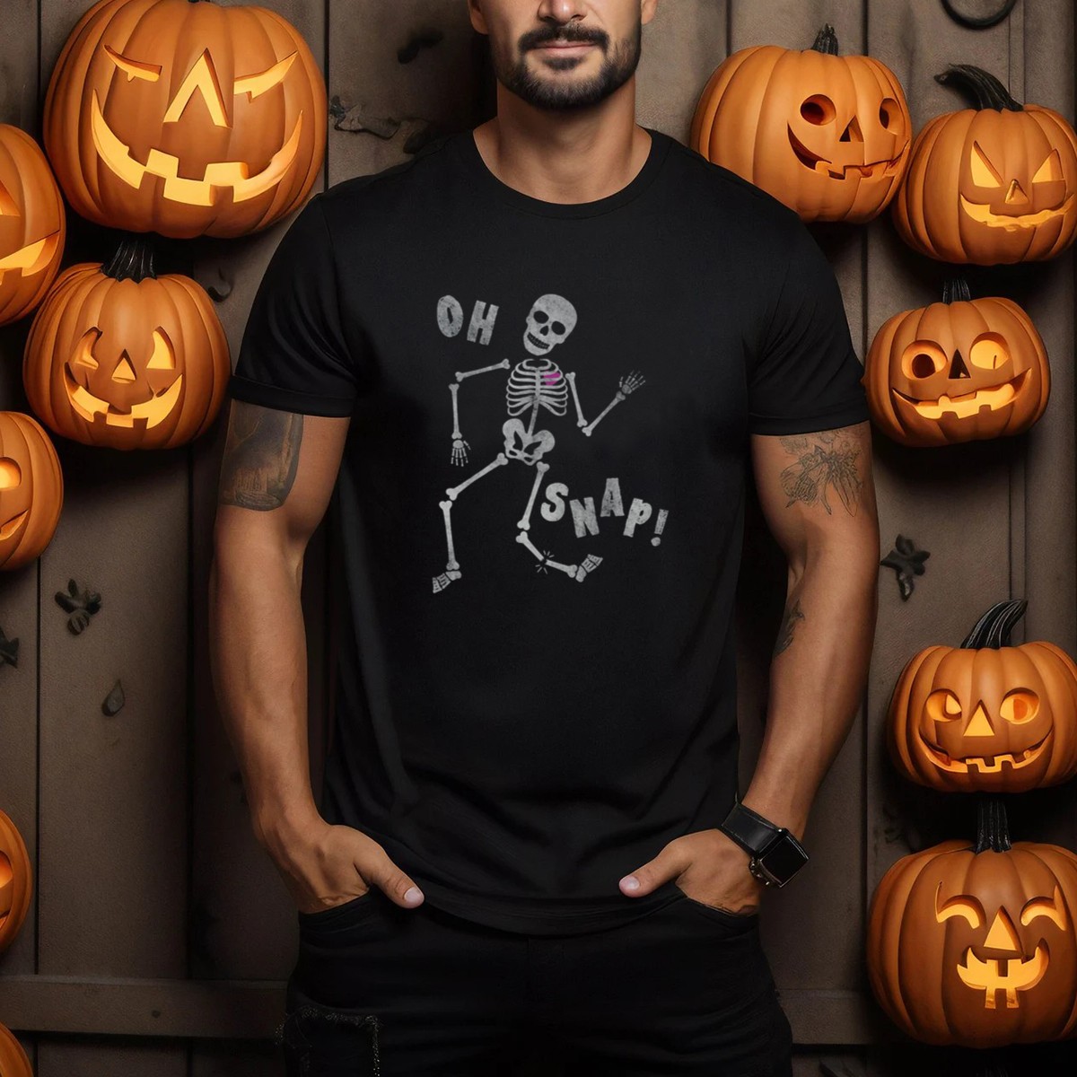 Get ready to embrace the spooky season with our Halloween Oh Snap Skeleton With Broken Leg T-Shirt! Perfect for fans of dark humor and all things Halloween, this tee is ideal for casual wear, themed events, or just a fun day out. The eye-catching design is fan-made and printed in the USA, ensuring you stand out wherever you go. Made from high-quality materials, this shirt combines comfort and style, making it a must-have for your autumn wardrobe.