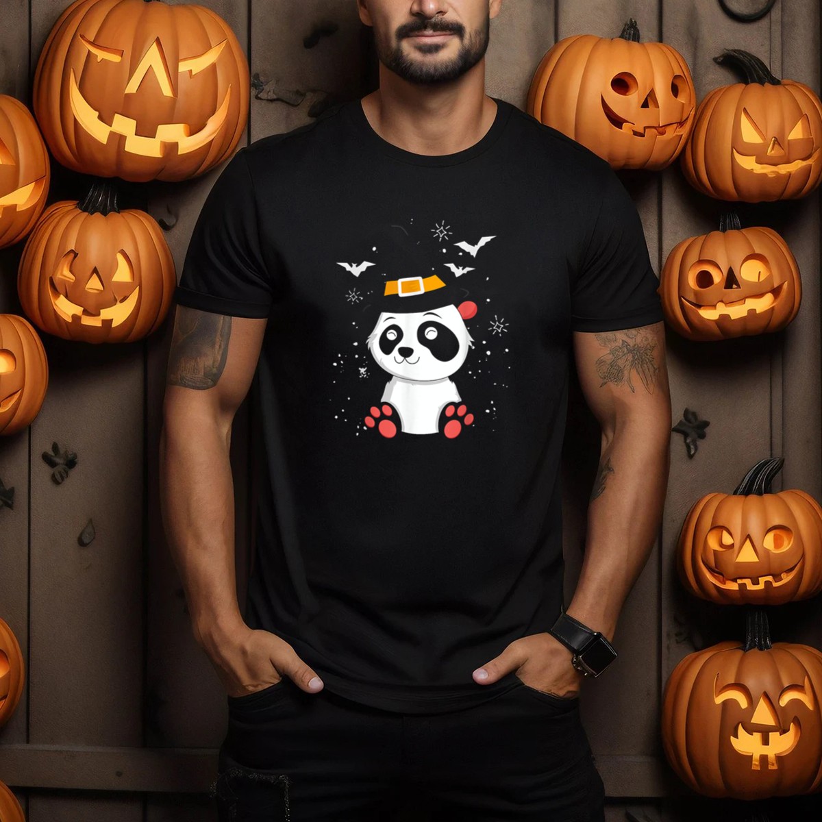 Embrace the spooky spirit of Halloween with our Halloween Panda Witch T-Shirt, featuring an adorable panda dressed as a witch surrounded by bats and stars. Perfect for kids and adults alike, this fun and whimsical design is ideal for casual wear, themed events, or just to add a touch of festive flair to your daily outfit. Made from 100% cotton, it combines comfort with a unique fan-made print that showcases your love for the season, all proudly printed in the USA.