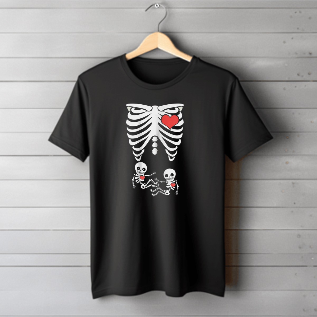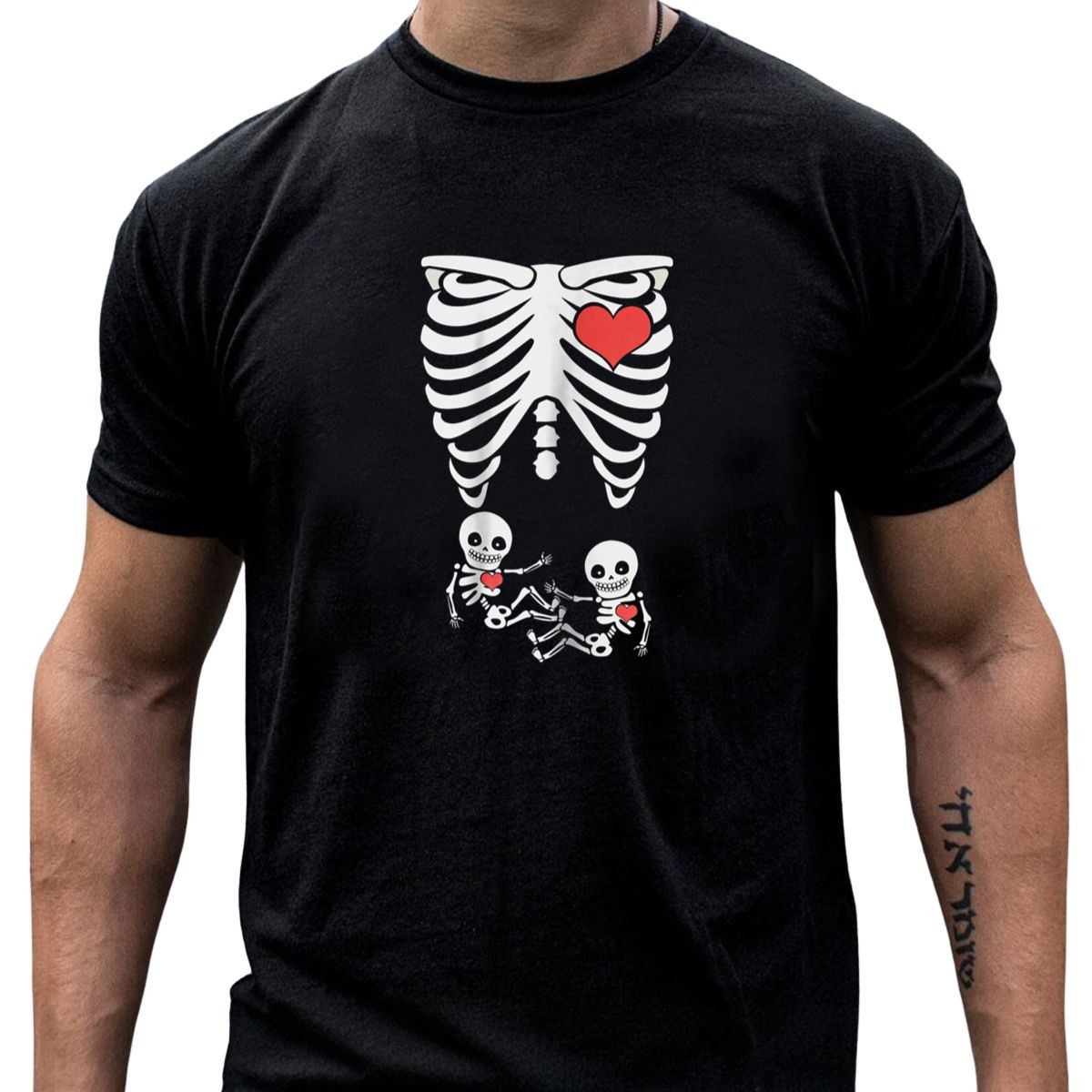 Celebrate the spirit of Halloween with our unique Pregnant Twin Baby Skeleton Xray With Heart T-Shirt! Perfect for expecting parents or anyone who wants to showcase their love for family in a fun and spooky way, this shirt is ideal for casual outings, themed events, or just lounging around. Made with a fan-made design printed in the USA, it’s a conversation starter that combines creativity with comfort.
