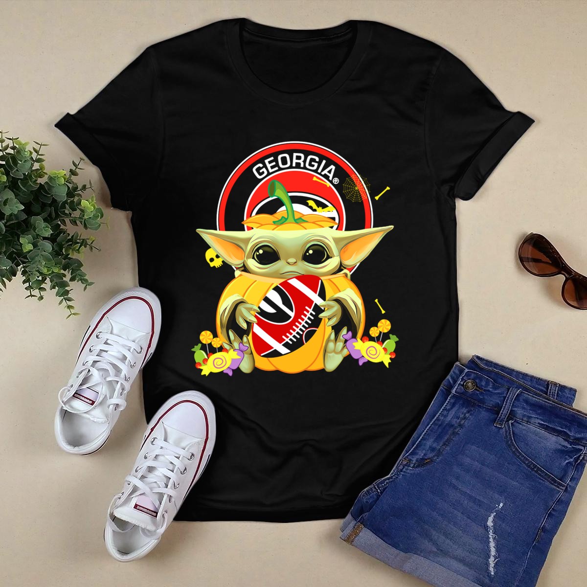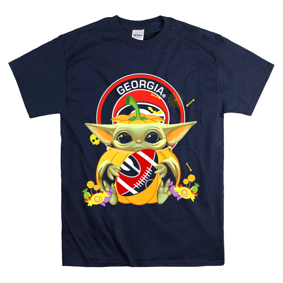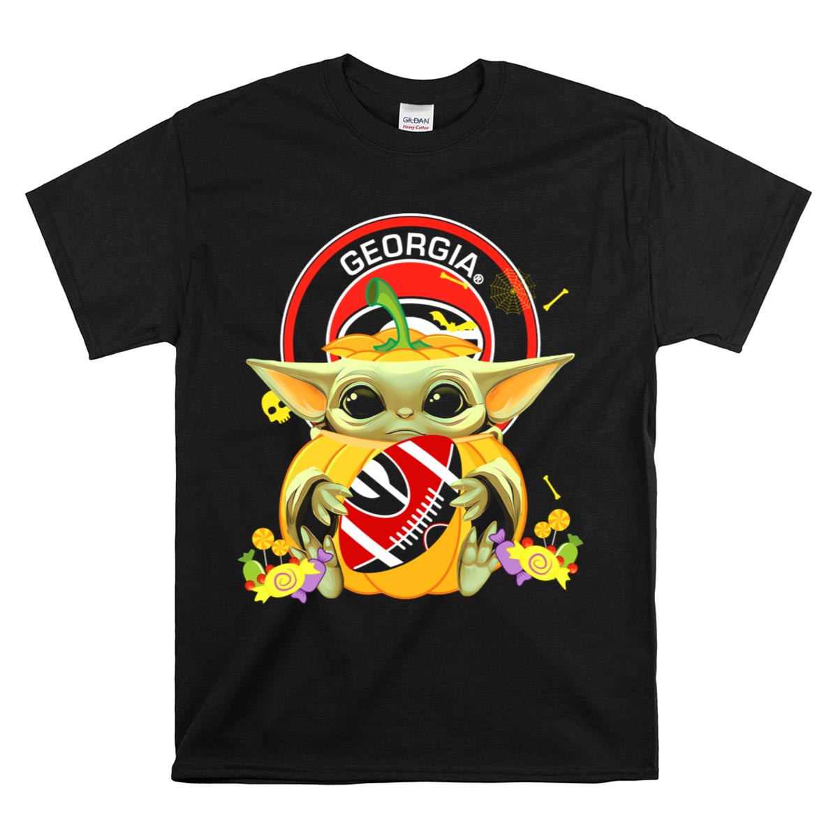 Halloween Pumpkin Baby Yoda Georgia Bulldogs Hug T Shirt
