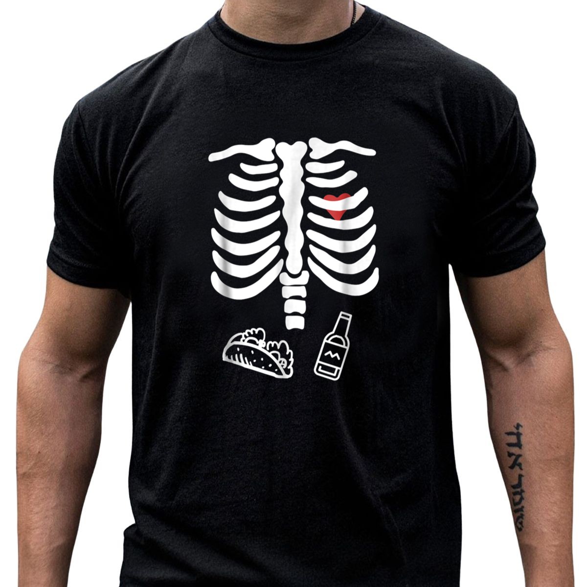 Be the first to review “Halloween Skeleton Costume With Tacos And Beverage T-Shirt”